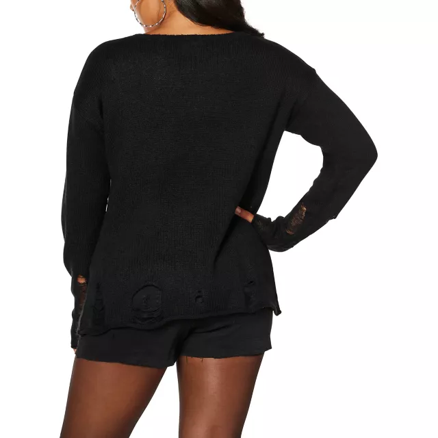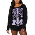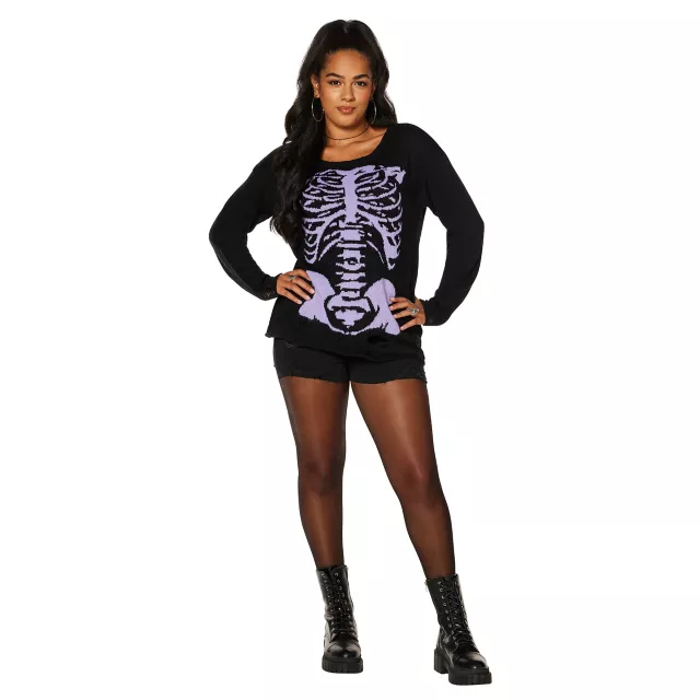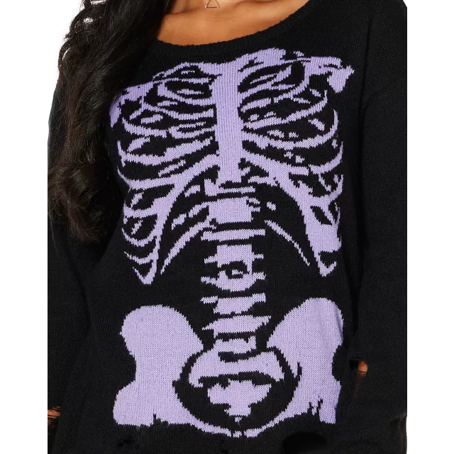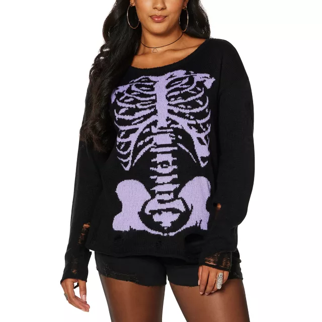 Bask in the spooky Halloween vibes and cozy up in this adorable Distressed Skeleton Sweater. The sweater also features rips and ribs...