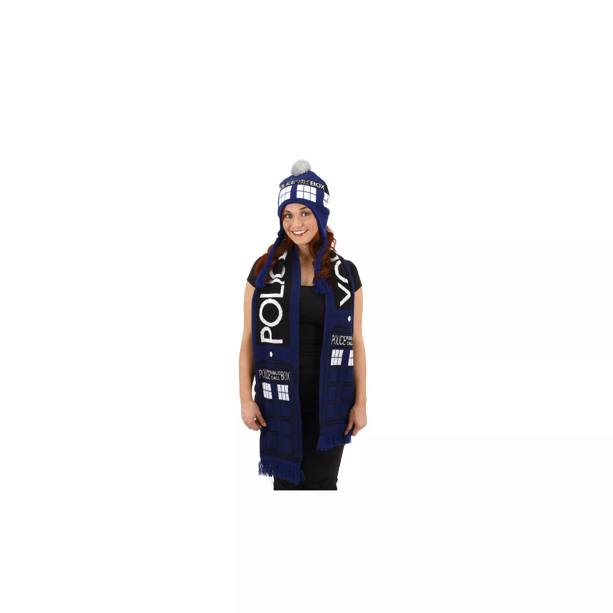 Travel through time and complete the wildest mission you can dream of when you decide to wear this officially licensed Doctor Who Tardis Laplander Hat. The blue, black and white hat features a pom-pom on top along with the words, "Police Public Call Box".