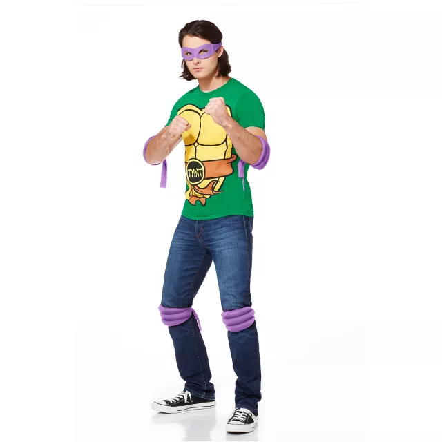 Make Splinter proud this Halloween when you wear this officially licensed TMNT Donatello Kit, which will transform you into the smartest of the Ninja Turtles! This kit includes a purple eye mask and matching elbow and knee pads that will transform any Teenage Mutant Ninja Turtle shirt, jumpsuit, or dress into a complete costume!