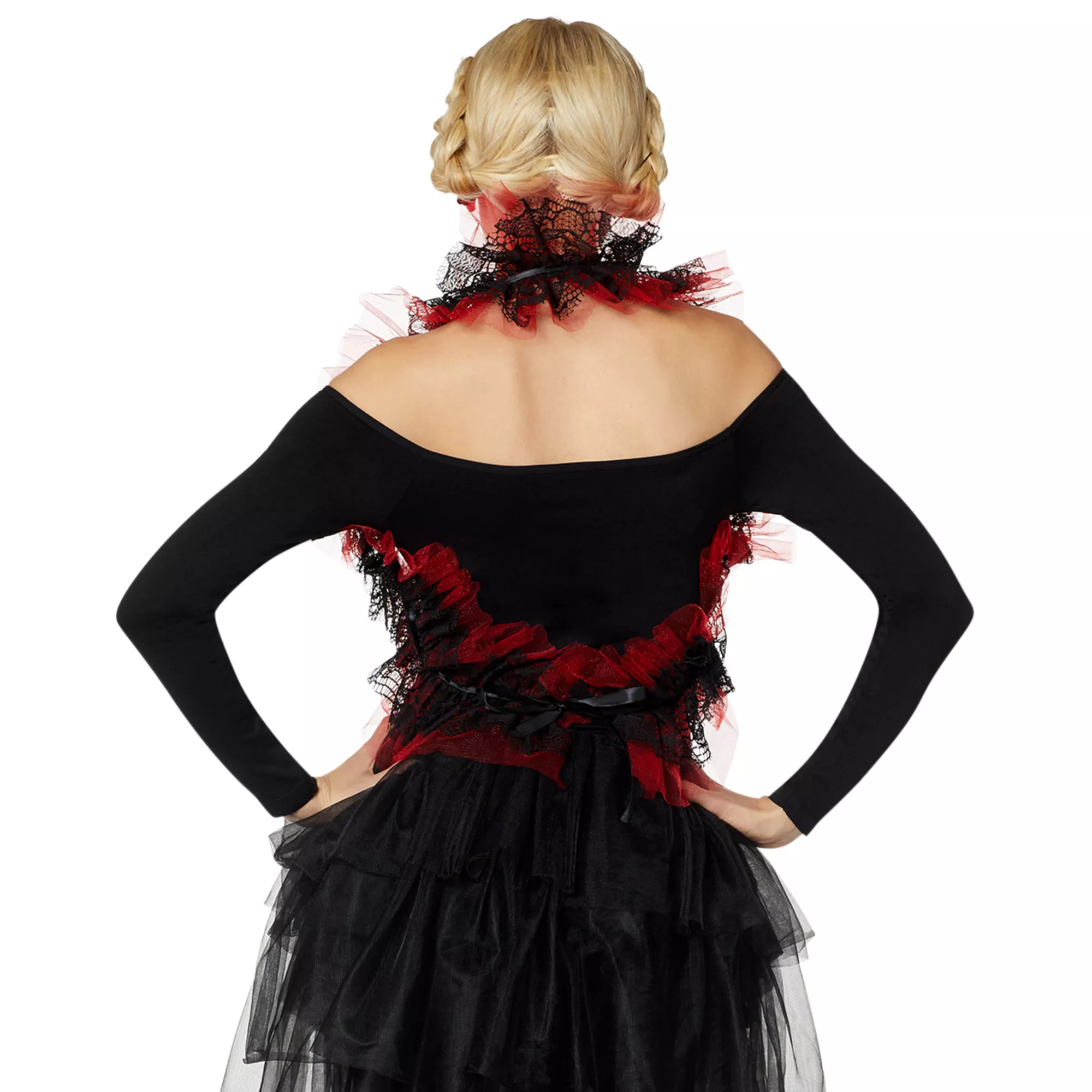 Accent your deadly costume while keeping yourself a little warmer with this Dotted Skull Lace Shrug! The black and red puffy shrug will add a feminine flair with its skull and lace detailing. This wrap-around shrug is perfect for enchanting others with your beauty on the Day of the Dead or Halloween!