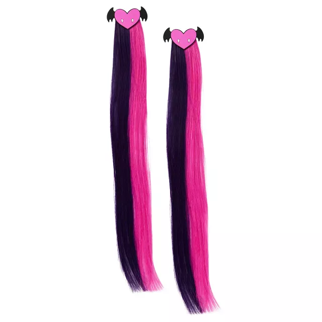 Sink your teeth into style with these Draculaura clip-in hair extensions! These hair extensions feature long strands of hot pink and black attached to pink hearts with black bat wings. Each clip features a comb backing, ensuring that your tresses stay comfortably in place as you roam the halls of Monster High.