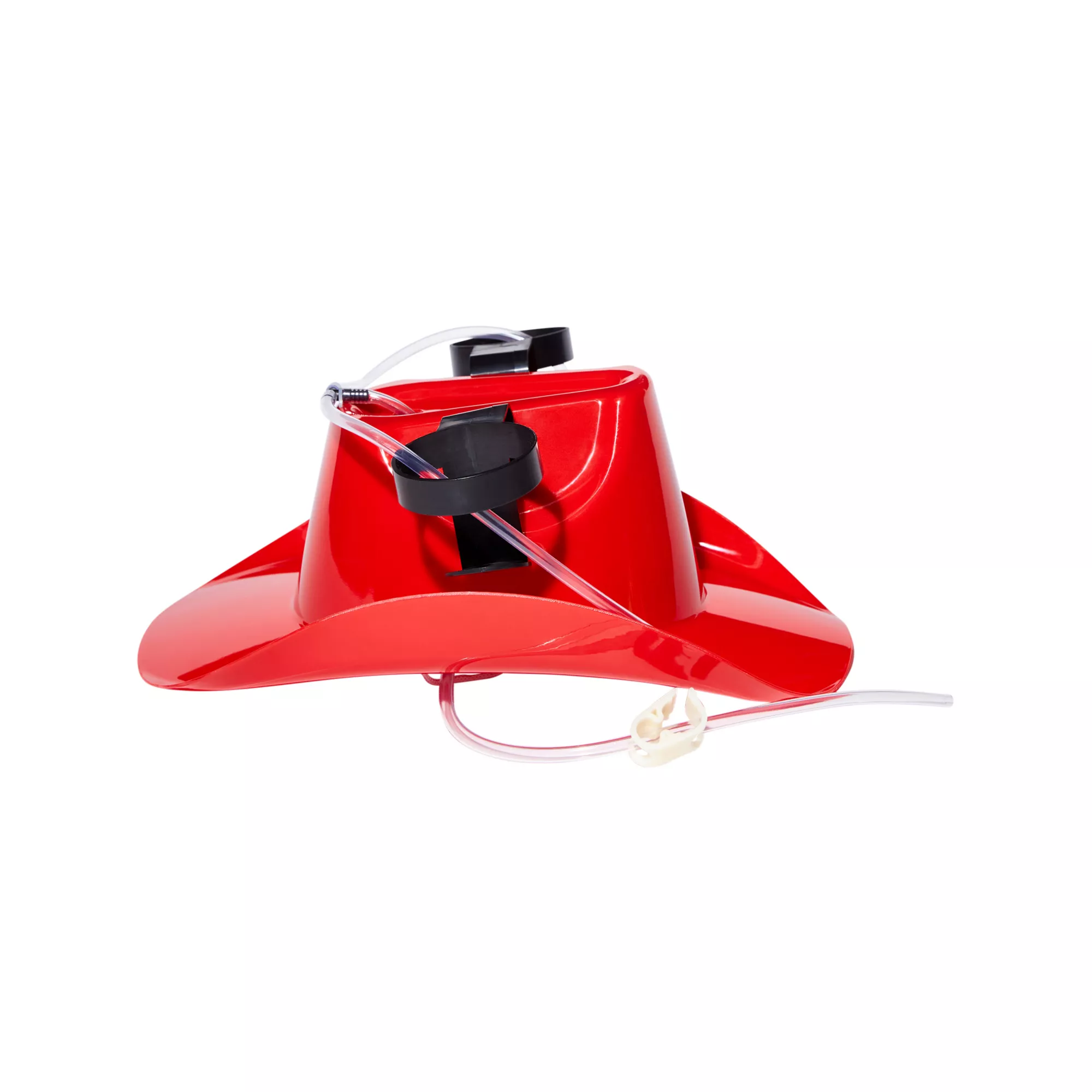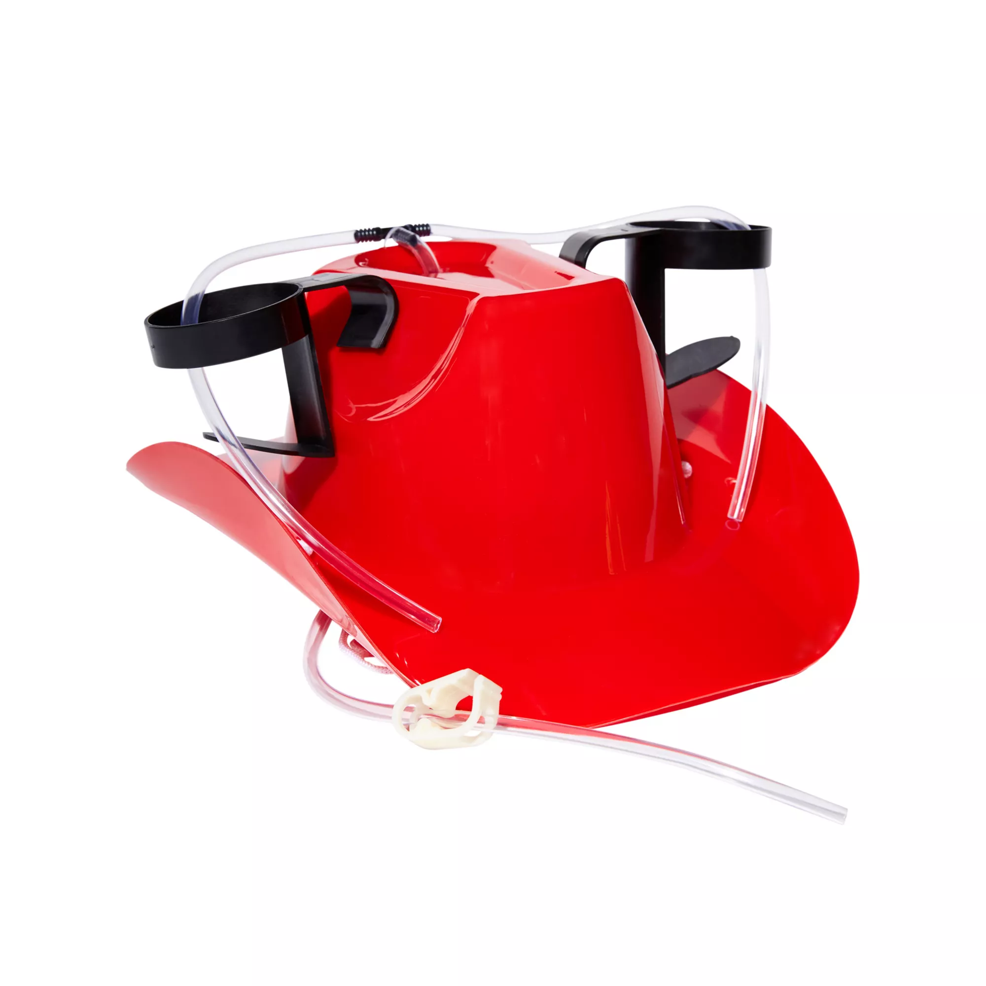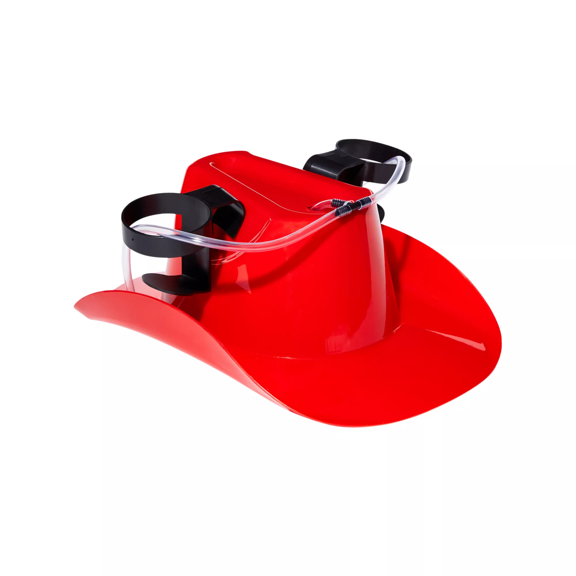 Get your drink on and let out a "yee-haw" once you complete your look this Halloween with this Cowboy Drinking Hat. Featuring two slots to put a can of your favorite drink in, this red cowboy hat is just what any cowboy needs to let loose and have a blast at the next rodeo!