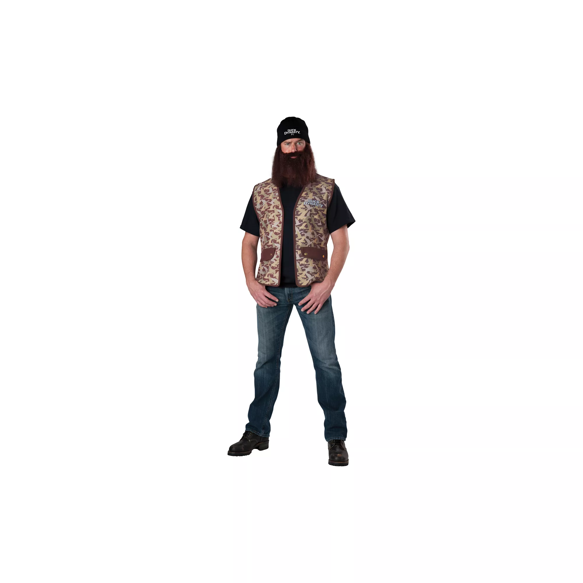 Discover your passion for duck hunting when you wear the officially licensed Duck Dynasty Jase Robertson Adult Men's Costume. This Duck Dynasty camouflage vest comes complete with a knit cap with attached wig and beard.