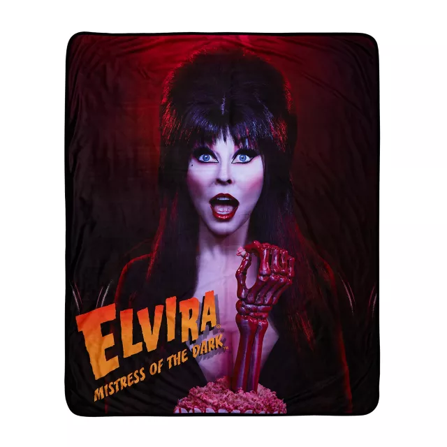 Snuggle up with the queen of Halloween herself! This officially licensed Elvira Mistress of the Dark Fleece Blanket showcases the iconic horror hostess in all her glory. This throw blanket is perfect for cozying up on chilly nights, adding a touch of gothic glamour to your room, or gifting to a horror enthusiast.