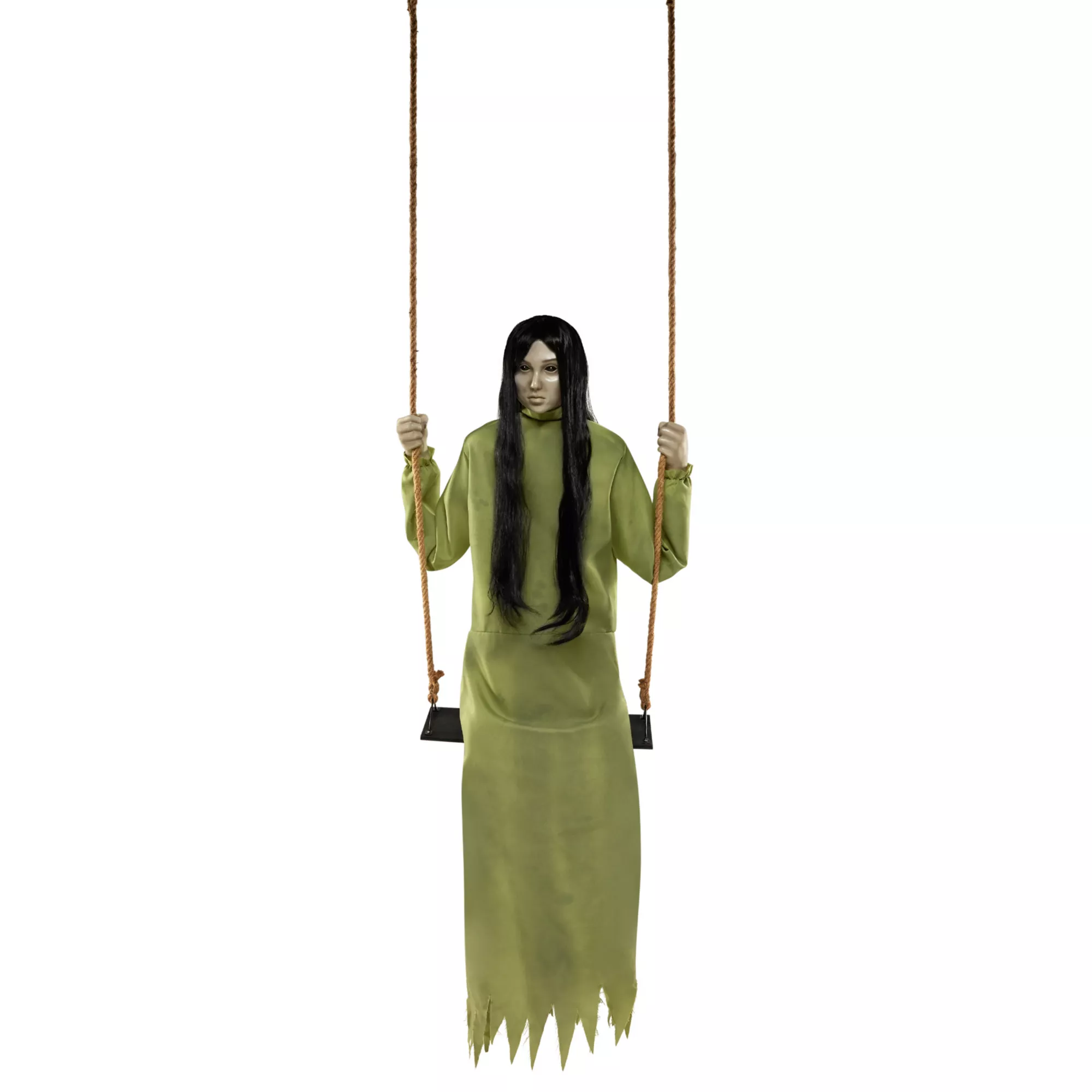 Make your home into a real life haunted house this Halloween! Using this creepy swing girl you'll have everyone running away in fear. Turn this stationary prop into a swinging animatronic with Spirit's Exclusive Swinging Mechanism (sold separately).