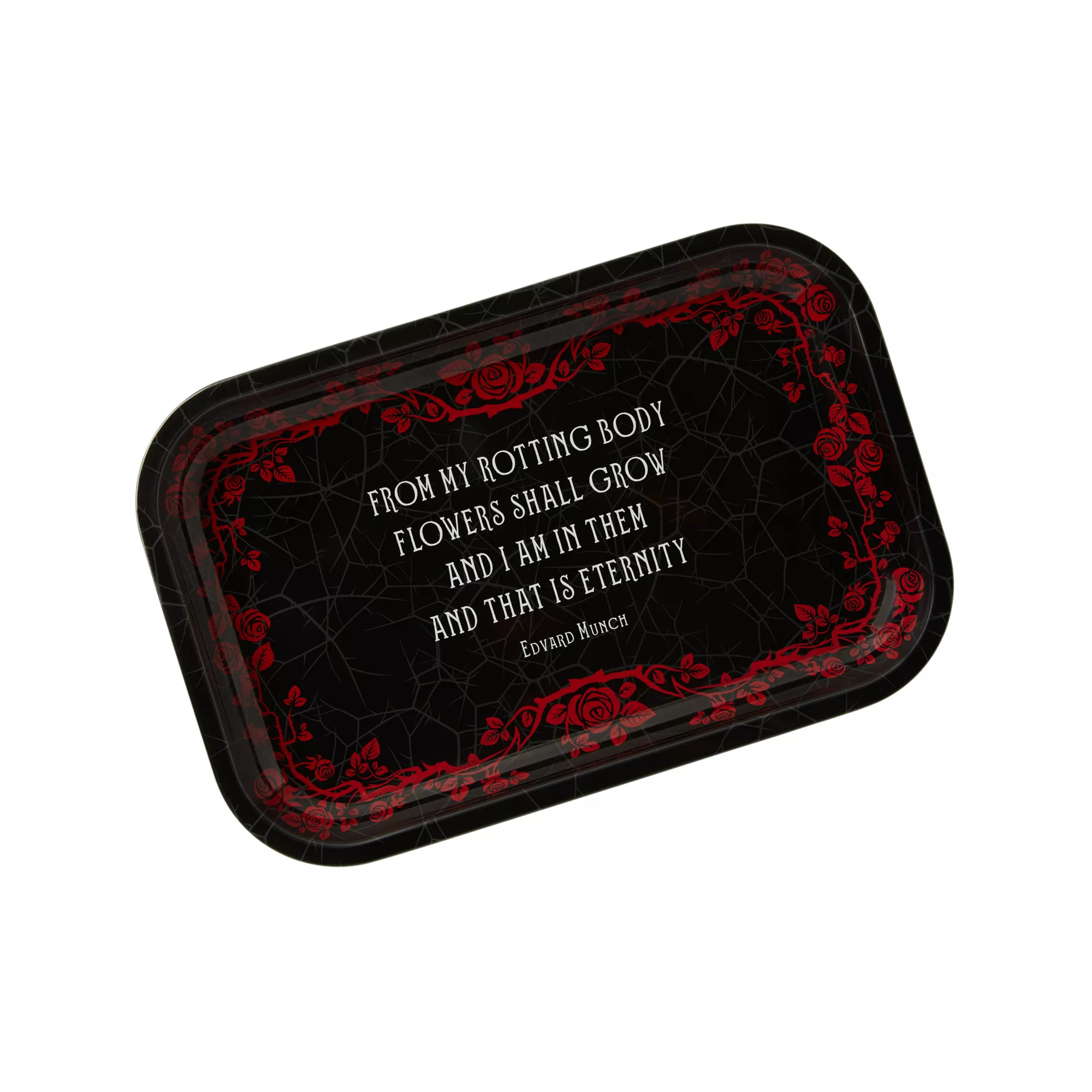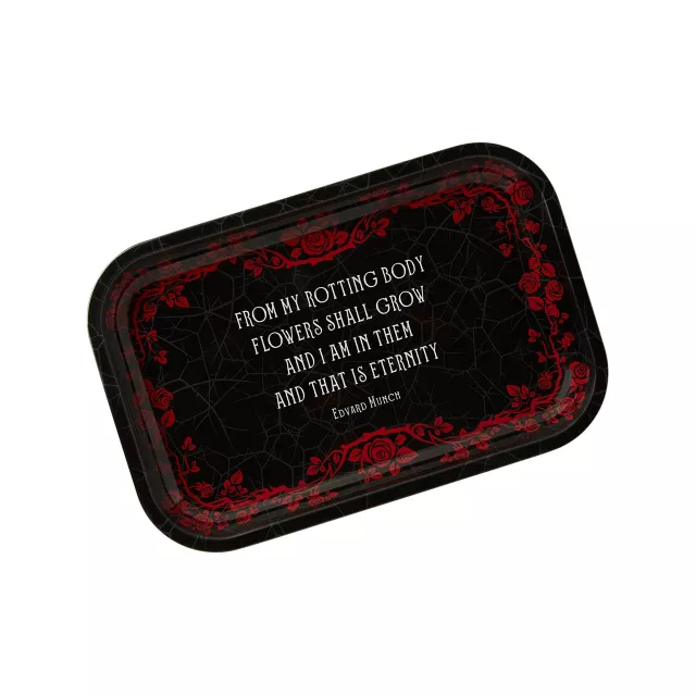 Add a gothic vibe to your favorite room and keep your most essential items safe with this Eternity Rose Tray. Featuring a beautiful design and a quote from Edvard Munch, this tray will definitely elevate the look of your home.