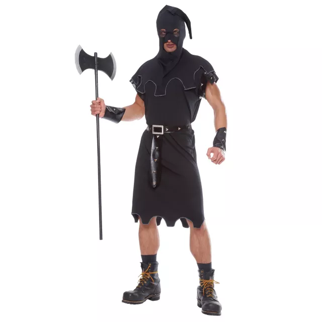 Kill them when you report for duty dressed in this menacing black Executioner Adult Mens Costume. The costume is authentic in styling and detail right down to the executioner hood. Scary!