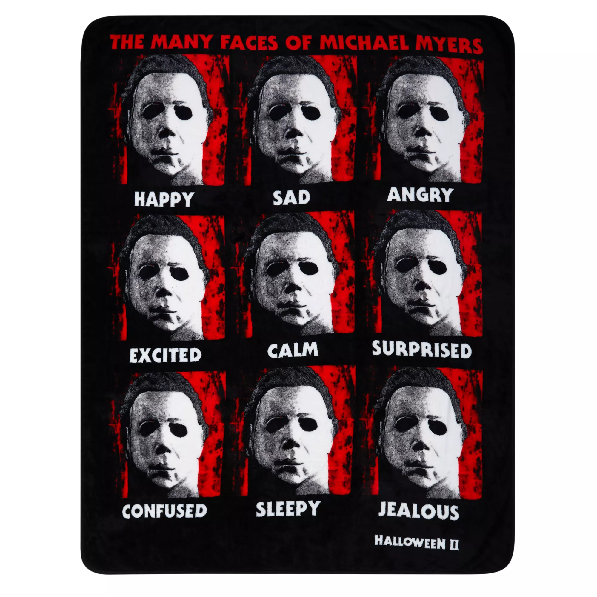 Whether he's happy, sad, or sleepy, Michael Myers always looks horrifying. Maybe it has something to do with that mask. Get cozy in this fleece blanket adorned with the many faces of Michael Myers while you watch classic Halloween movies!