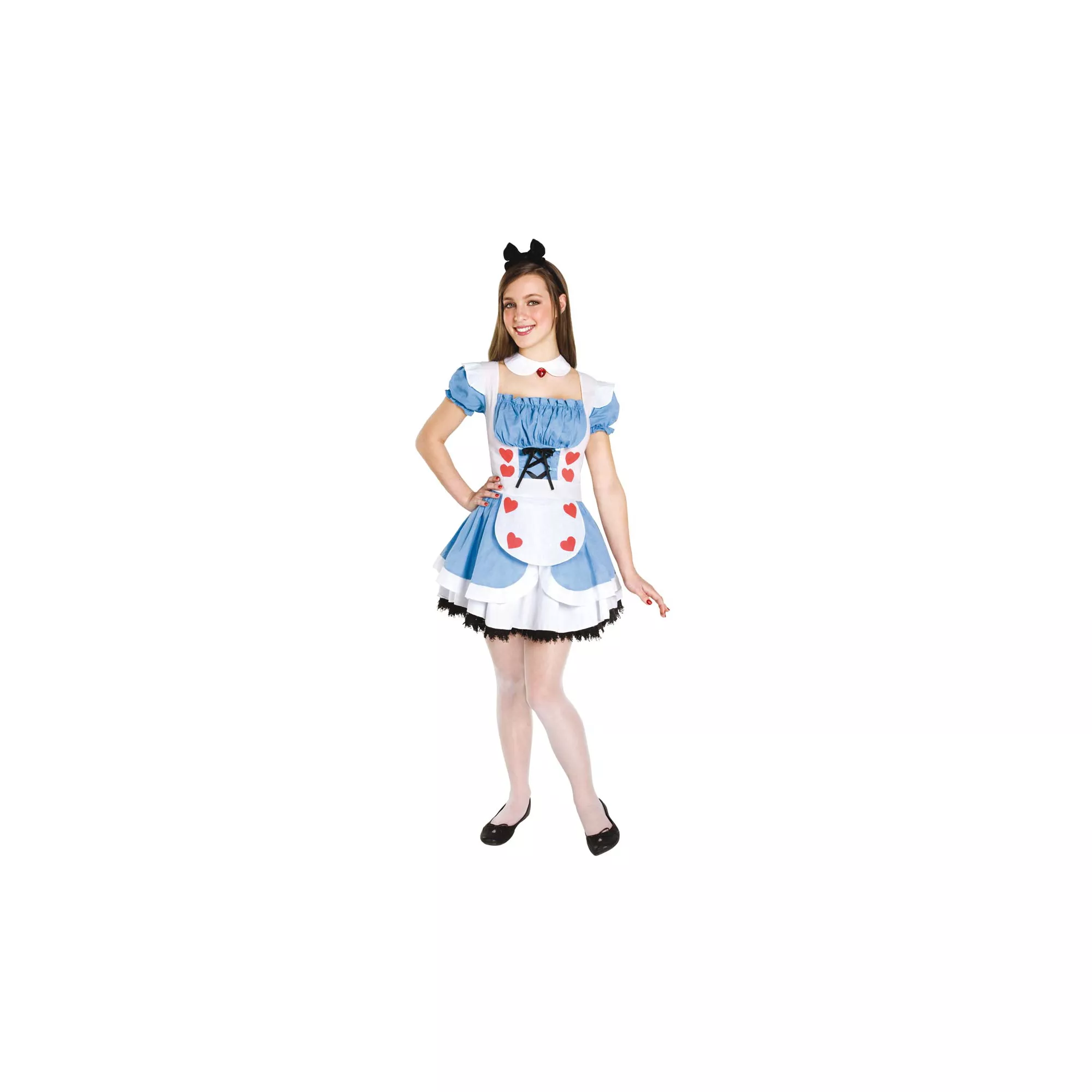 Be the queen of the party and break hearts in this fun Fairytale Alice teen costume. The lace-up bodice on the heart-trimmed pinafore apron adds a sassy touch to this classic costume. Play your cards right and you'll be the winner in this pretty costume.