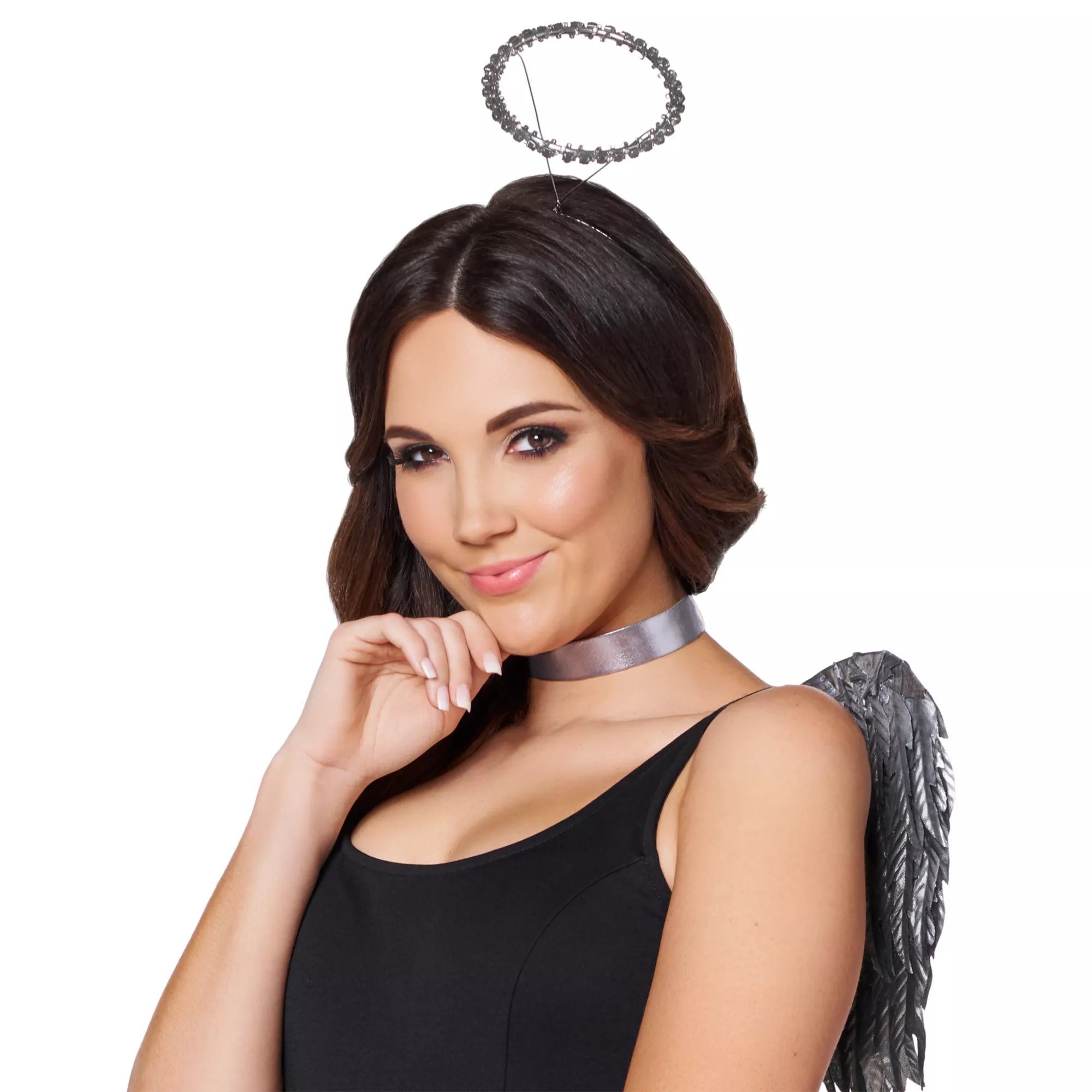 Accessorize your fallen angel costume with this iridescent halo headband, wings and choker necklace. You'll be the prettiest dark angel in town this Halloween.