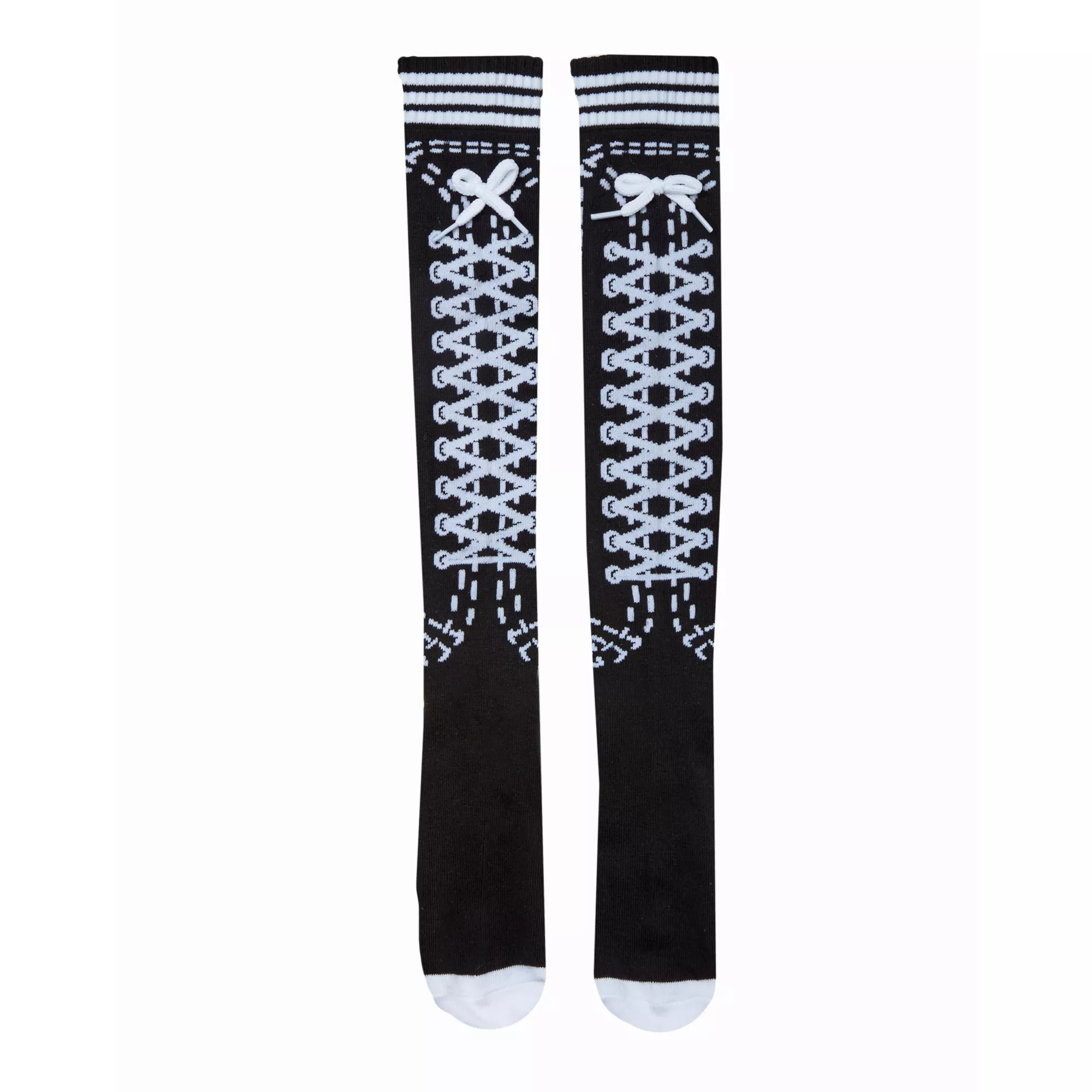 Trick everyone with this treat! These comfortable socks look like you're wearing shoes! The printed lace up detail hugs your legs perfectly for a look that is all your own!