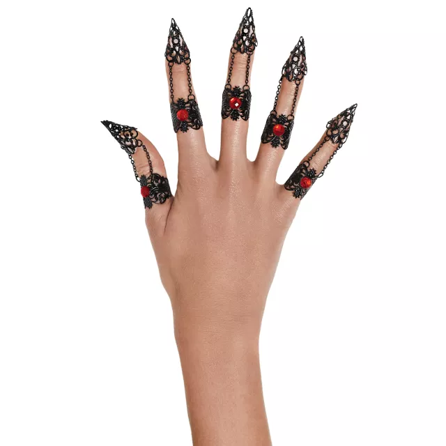 Accessorize your vampire look with some bling this Halloween with these beautiful Filigree Vampire Finger Covers. These stylish finger covers feature a red gem in the middle of each digit and will take your next vampire costume to the next level of style.