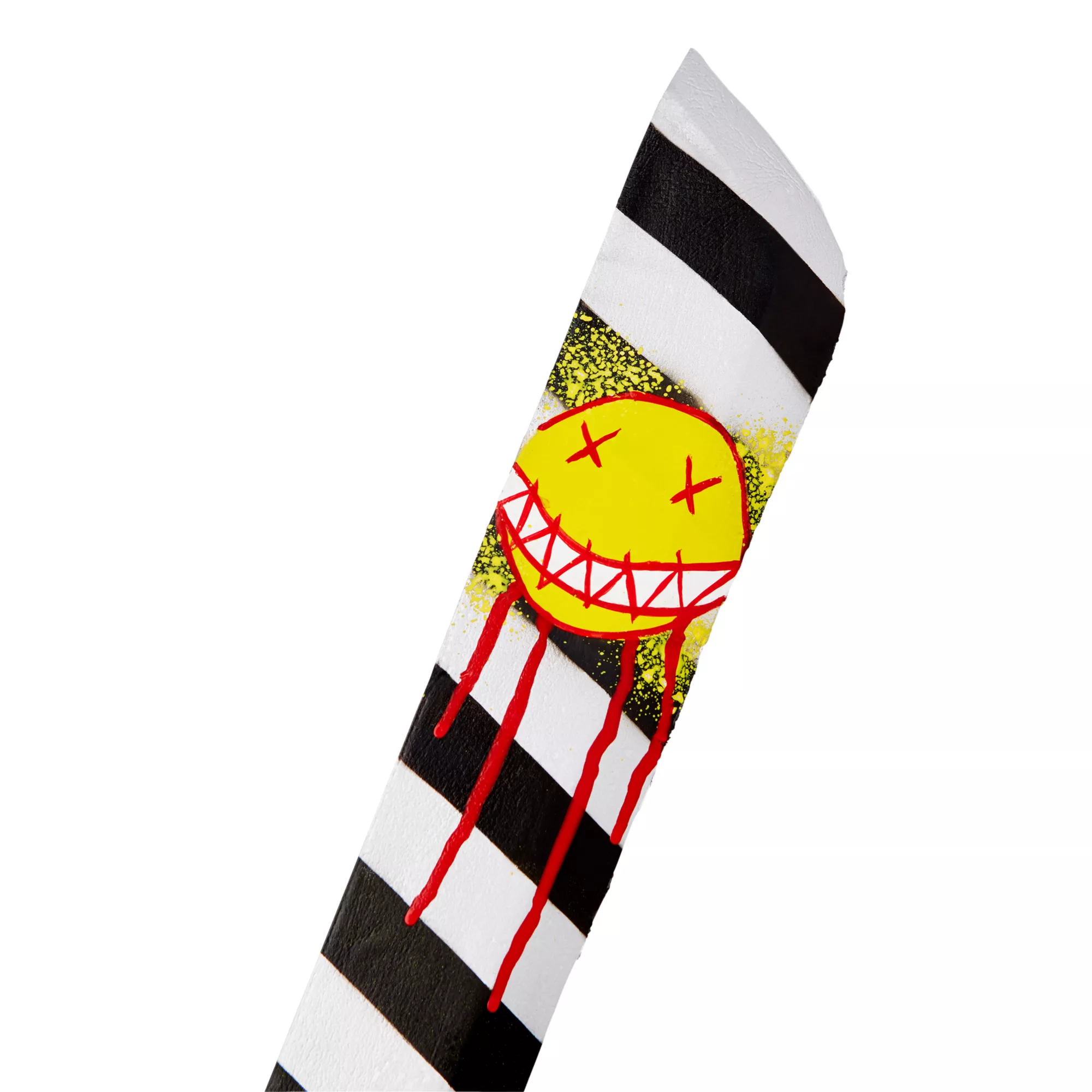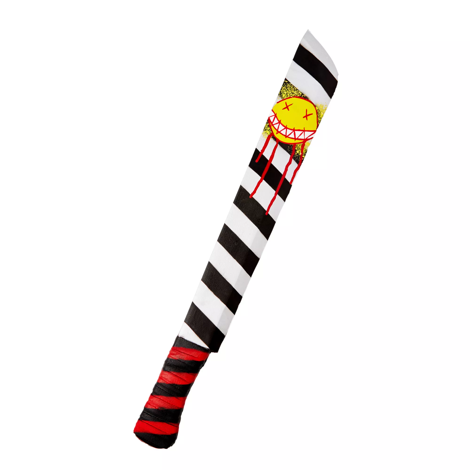 Bring menacing laughter and fear with you wherever you go while you’re carrying this foam clown machete. This machete features a red and black striped handle while the blade of the machete is striped black and white. The machete also has a bleeding smiley face on the edge of the blade, an ironic last image for anyone who’s on the chopping block.