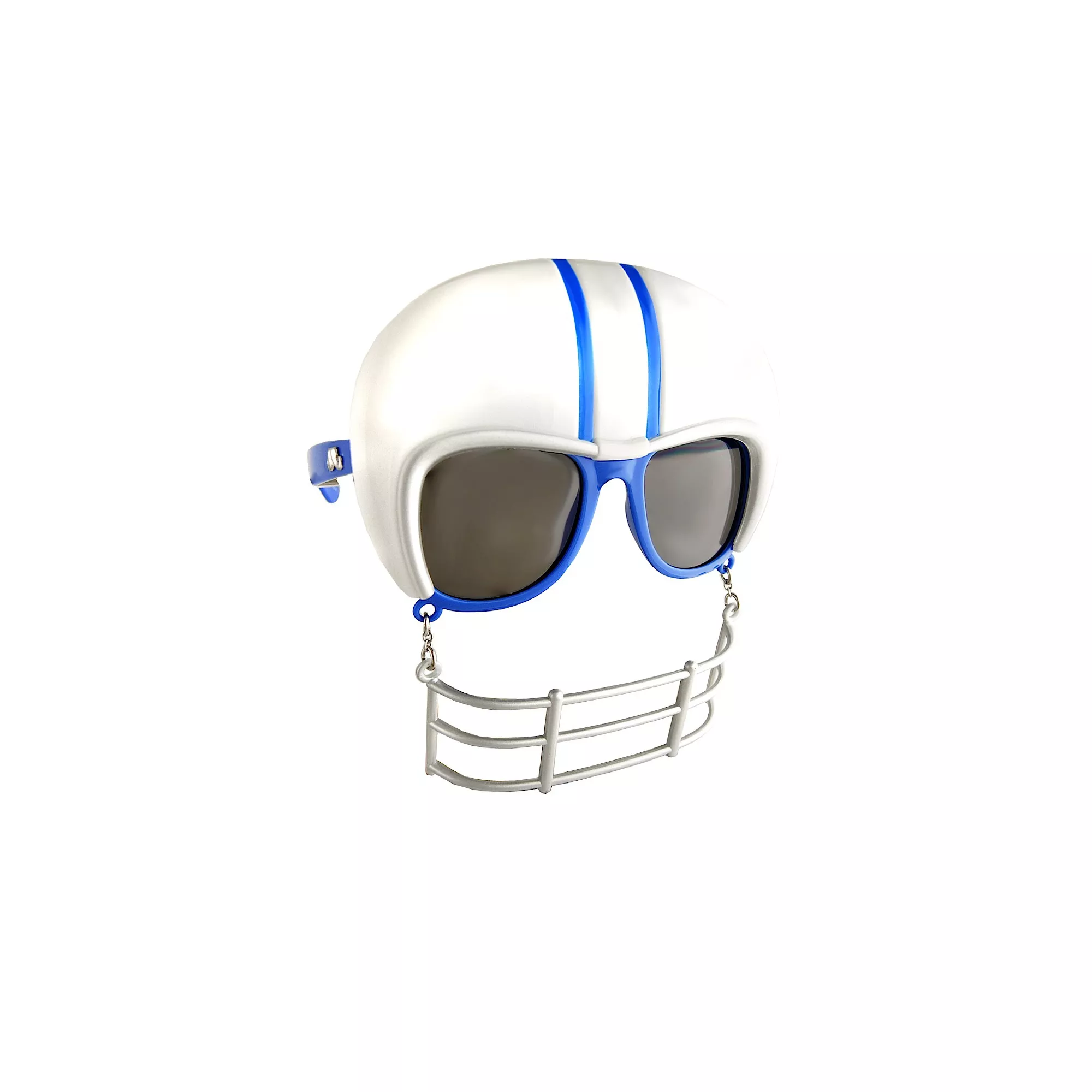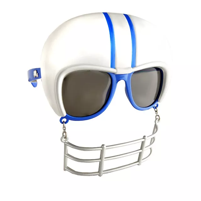 Get your game face on when you wear the Football Game Shades. This pair of blue and white glasses feature football helmet details along with smoke grey lenses.