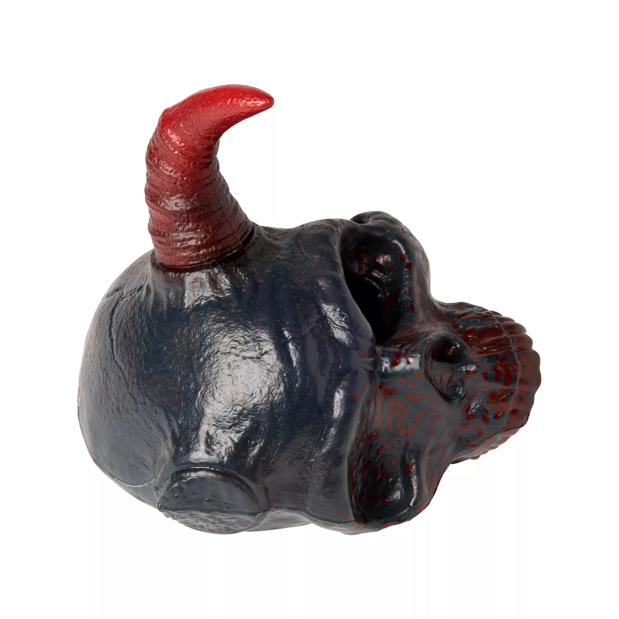 Keep your Halloween decor looking dark and sinister with this Fractured Horned Skull on display. Splattered with blood and split and half this demonic skull is the perfect creepy addition to your dark dungeon decor.