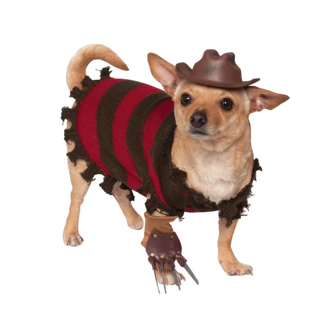 Your little pup will be tearing up Halloween when you dress them in this Freddy Krueger Pet Costume. This red and black sweater comes complete with the classic character hat and glove.