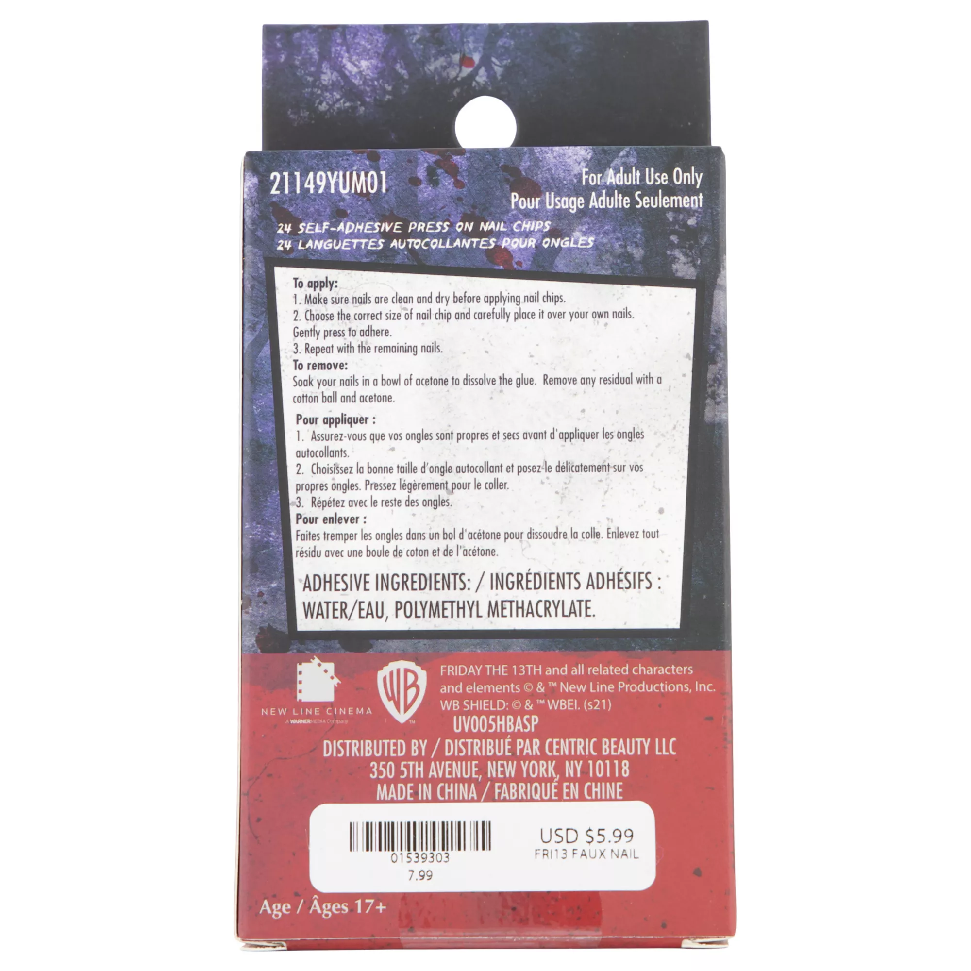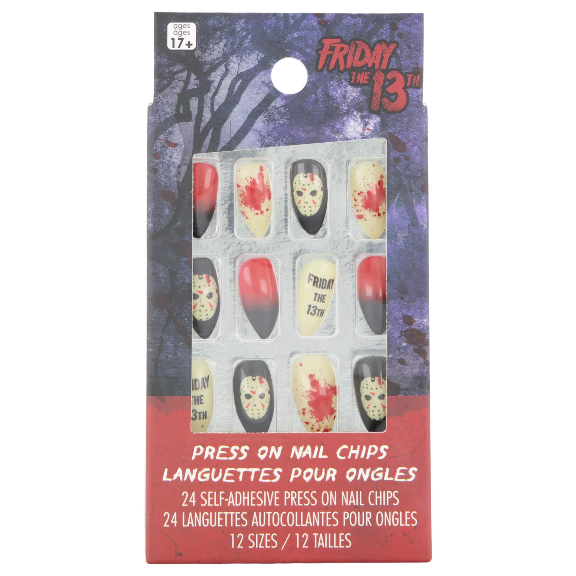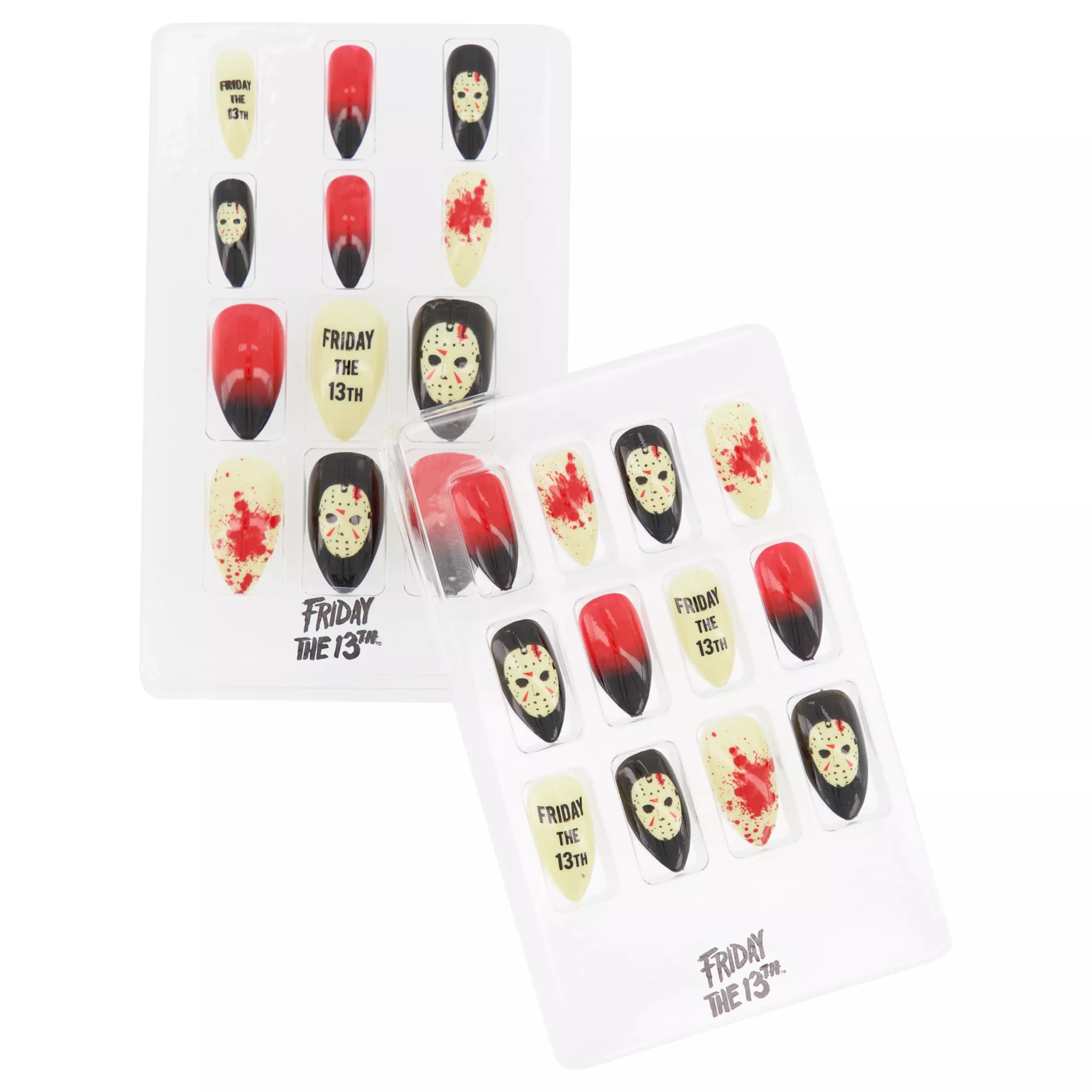 Make your nails an homage to your favorite movie with these official Friday the 13th Press On Nails! These red, white and black nails feature images of Jason Voorhees's mask or say Friday the 13th or have a bloody image that's sure to scare.