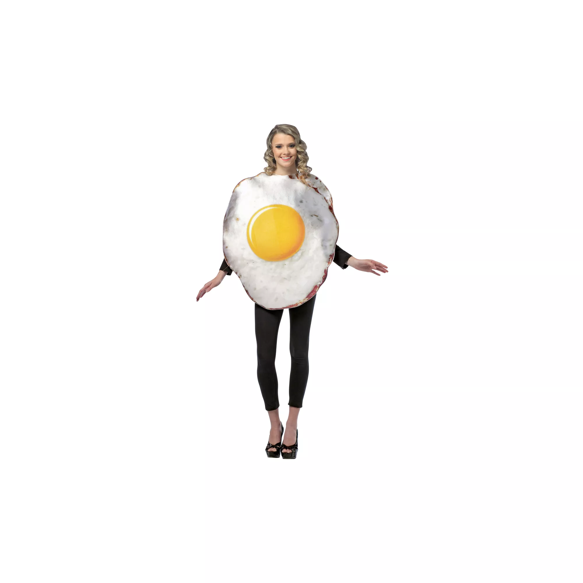 I'll take mine over easy! Maybe you're not all that easy after all - in this Fried Egg adult costume you can celebrate Halloween sunny side up! Make 'em smile in this clever costume; pair with bacon for a great couples costume.
