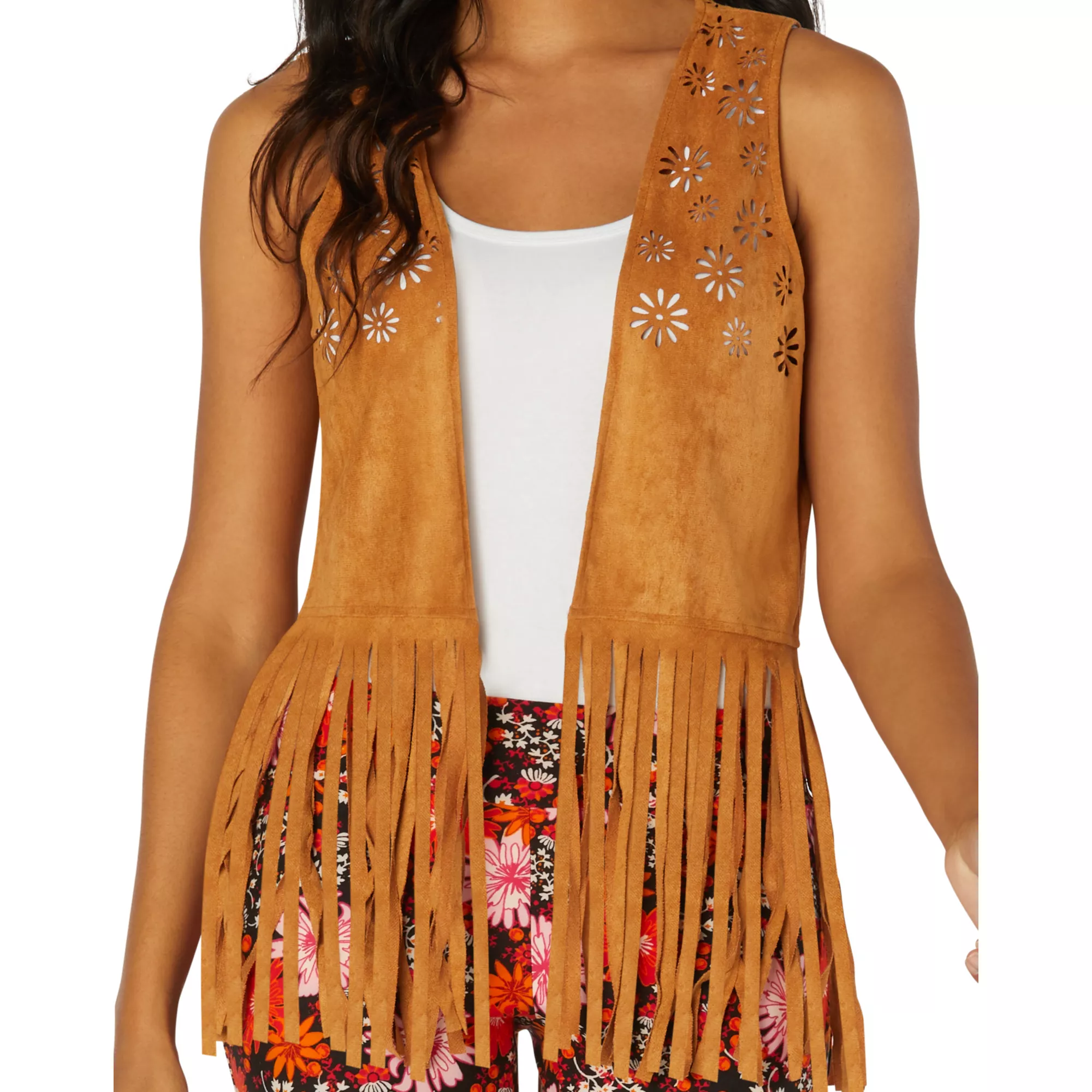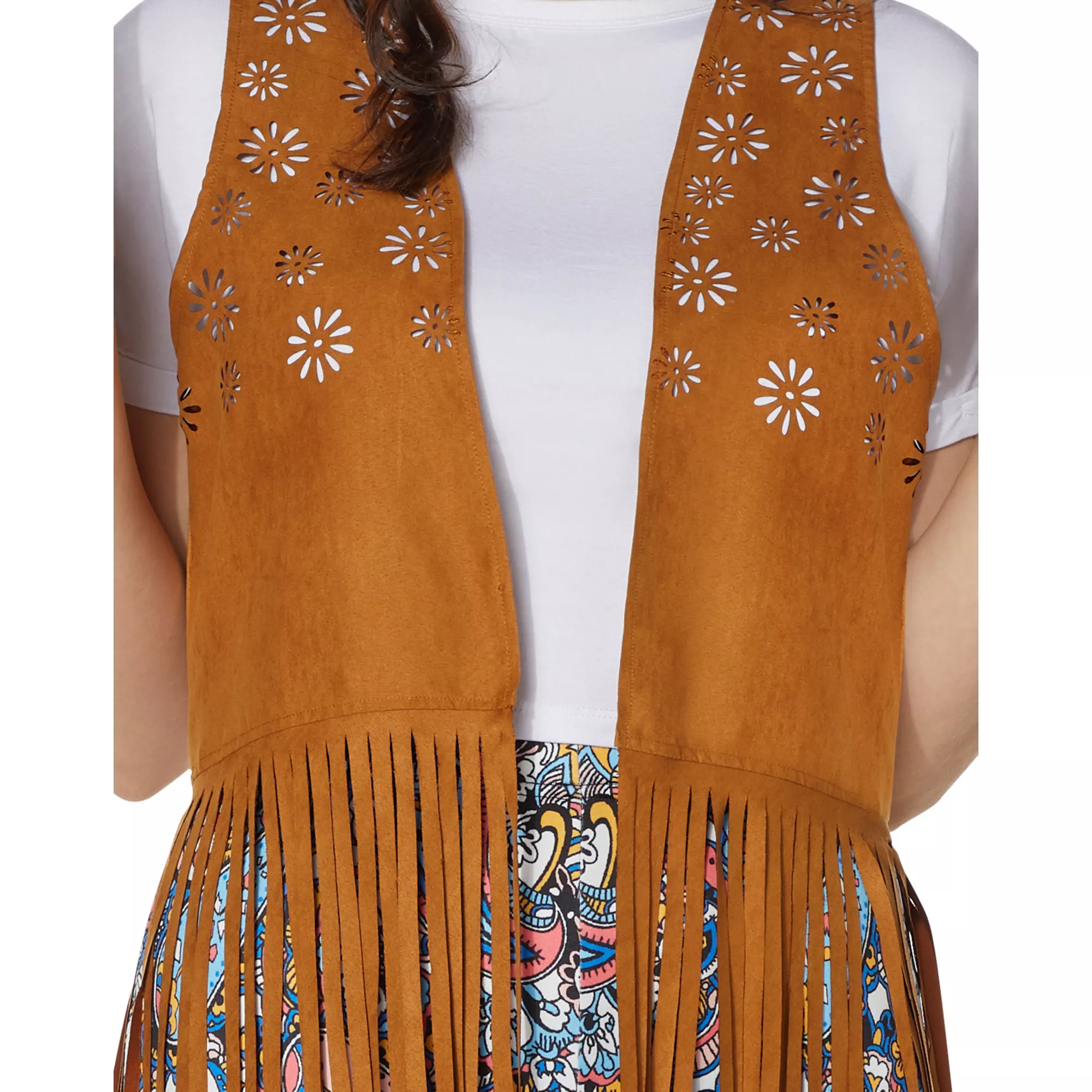 Make Halloween all about peace and love! This fringe hippie vest is the perfect addition to your hippie costume! With a fringe bottom and cut-out flower detail, you'll look like you just stepped out of the '70s!