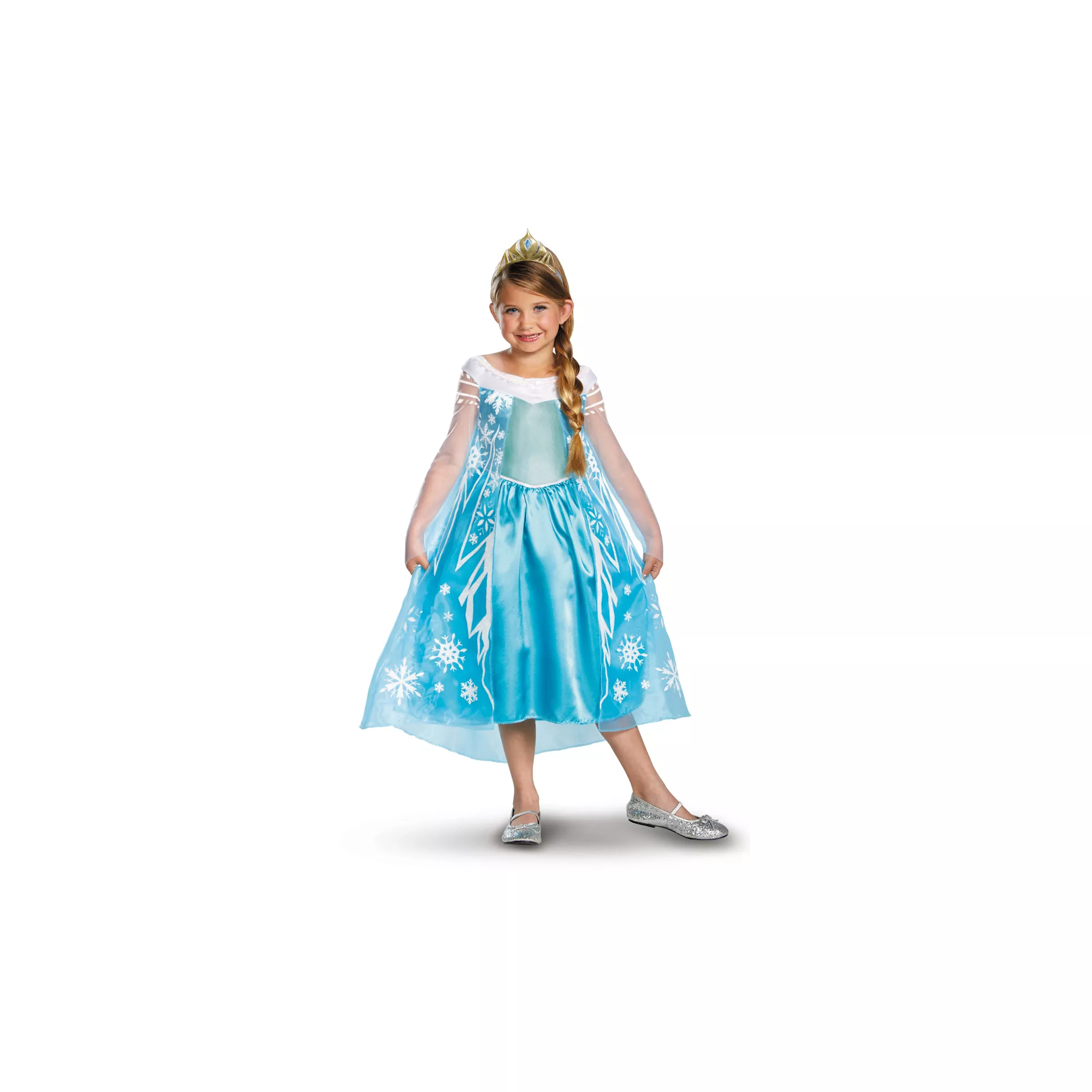 Try not to eternally freeze the world when you wear this officially licensed Frozen Elsa The Snow Queen Child Costume. In this bright blue shimmery gown with sheer overlay, snowflake print and gold tiara, she'll freeze everyone with her beauty.