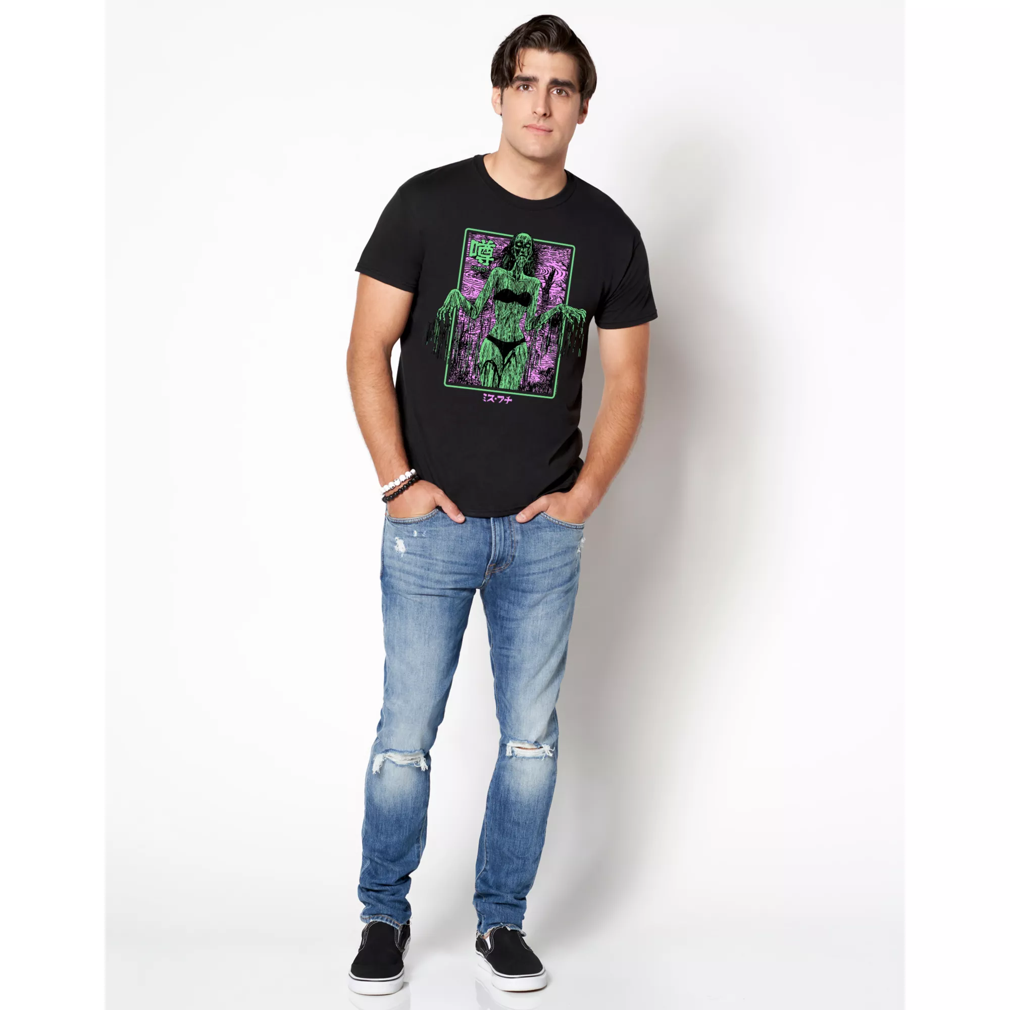 Add a fresh new look to your casual outfit by adding this Fuchi T Shirt to your casual wardrobe. This awesome tee features the work of mangaka Junji Ito and is sure to have you looking and feeling cool.