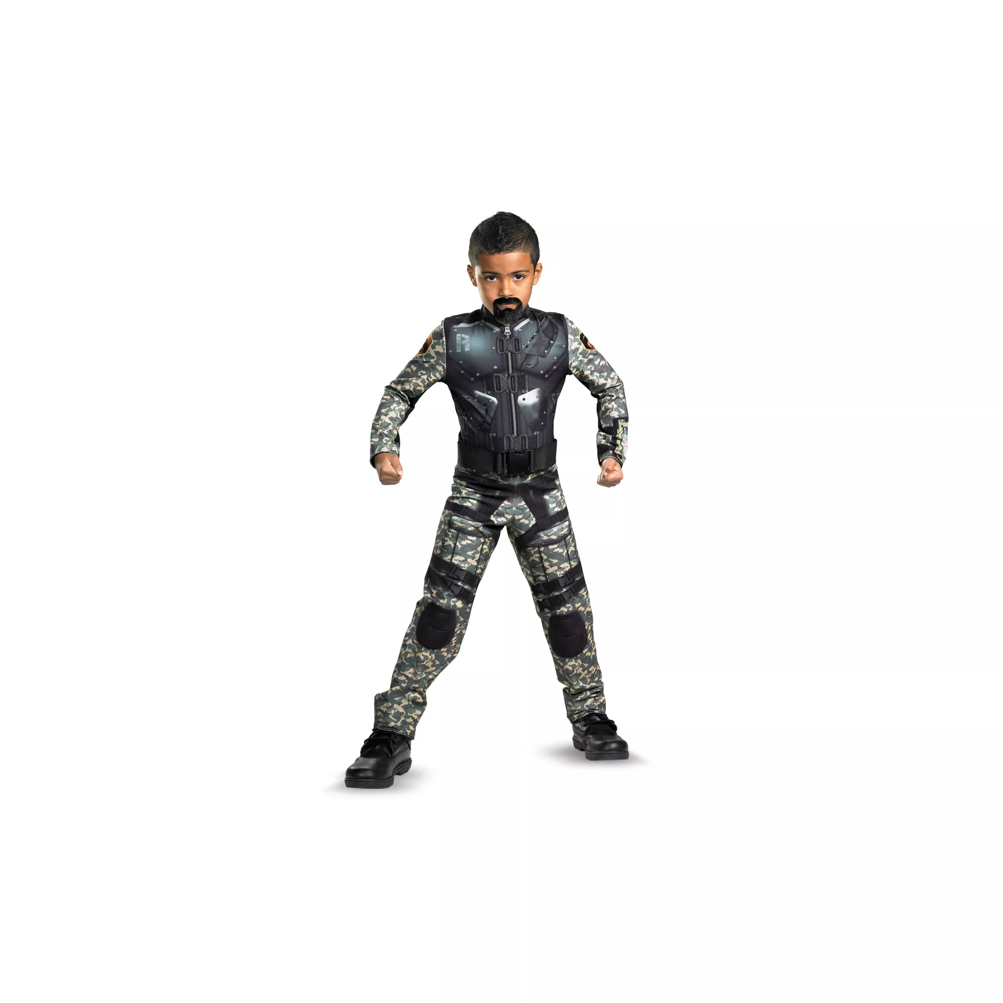 Roadblock is the G.I. Joe Team's Heavy Machine Gunner. Hit your mark on Halloween and defeat the enemy in this officially licensed G.I. Joe Roadblock classic child's costume which even includes a self-adhesive character moustache goatee.
