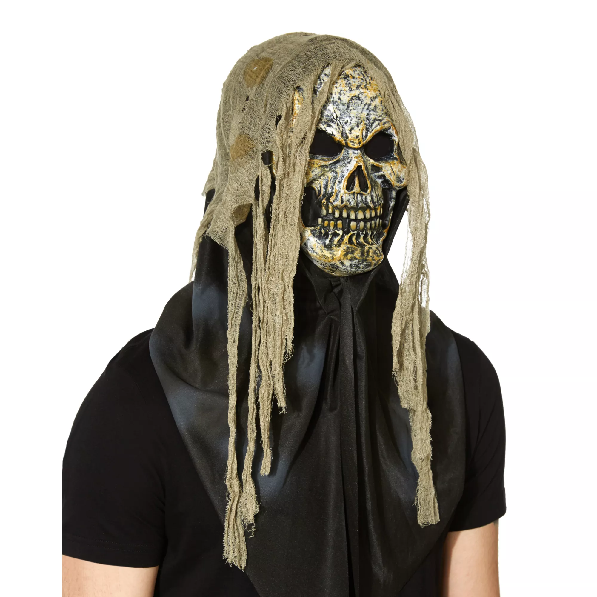 Create the persona of a crypt creature with this eeriely authentic looking gauze Skull mask with closed mouth. It looks like his teeth were clenched in death - scary!