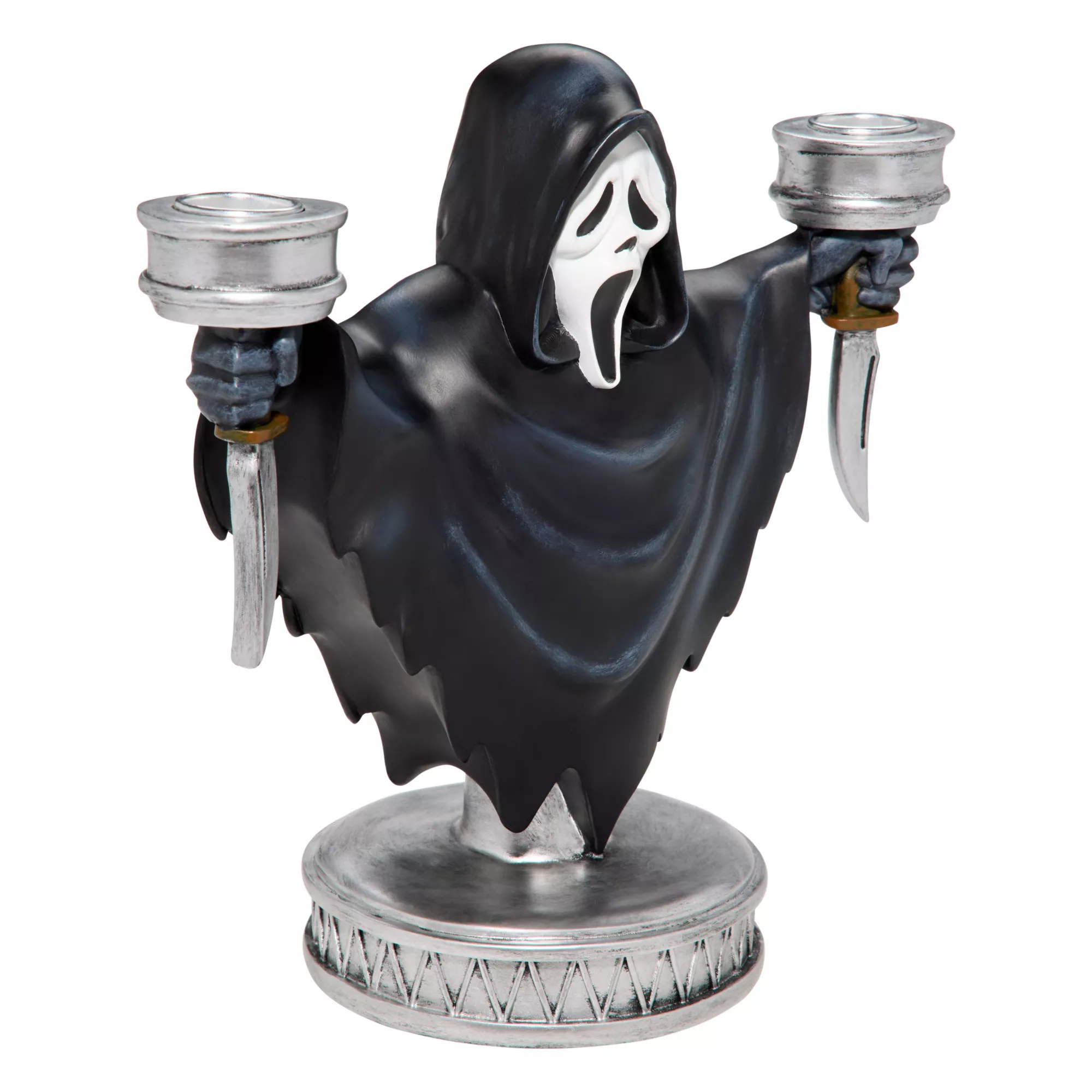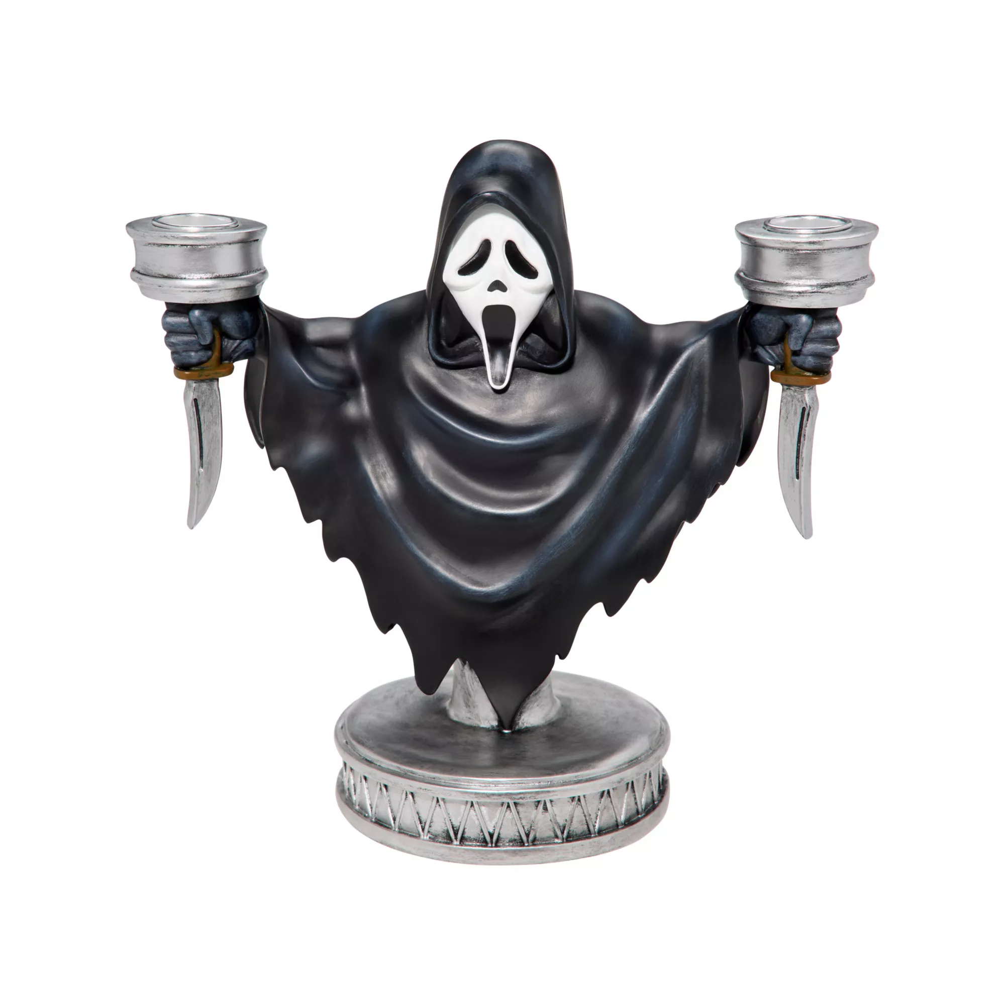Constantly rewatching your favorite horror movies? Add a sinister twist to your home décor collection when you get this officially licensed Ghost Face Candelabra, sculpted to showcase the legendary horror villain hoisting two knives (which conveniently hold your taper candles).