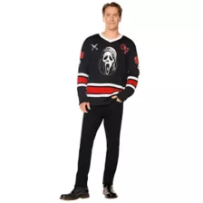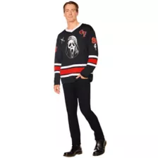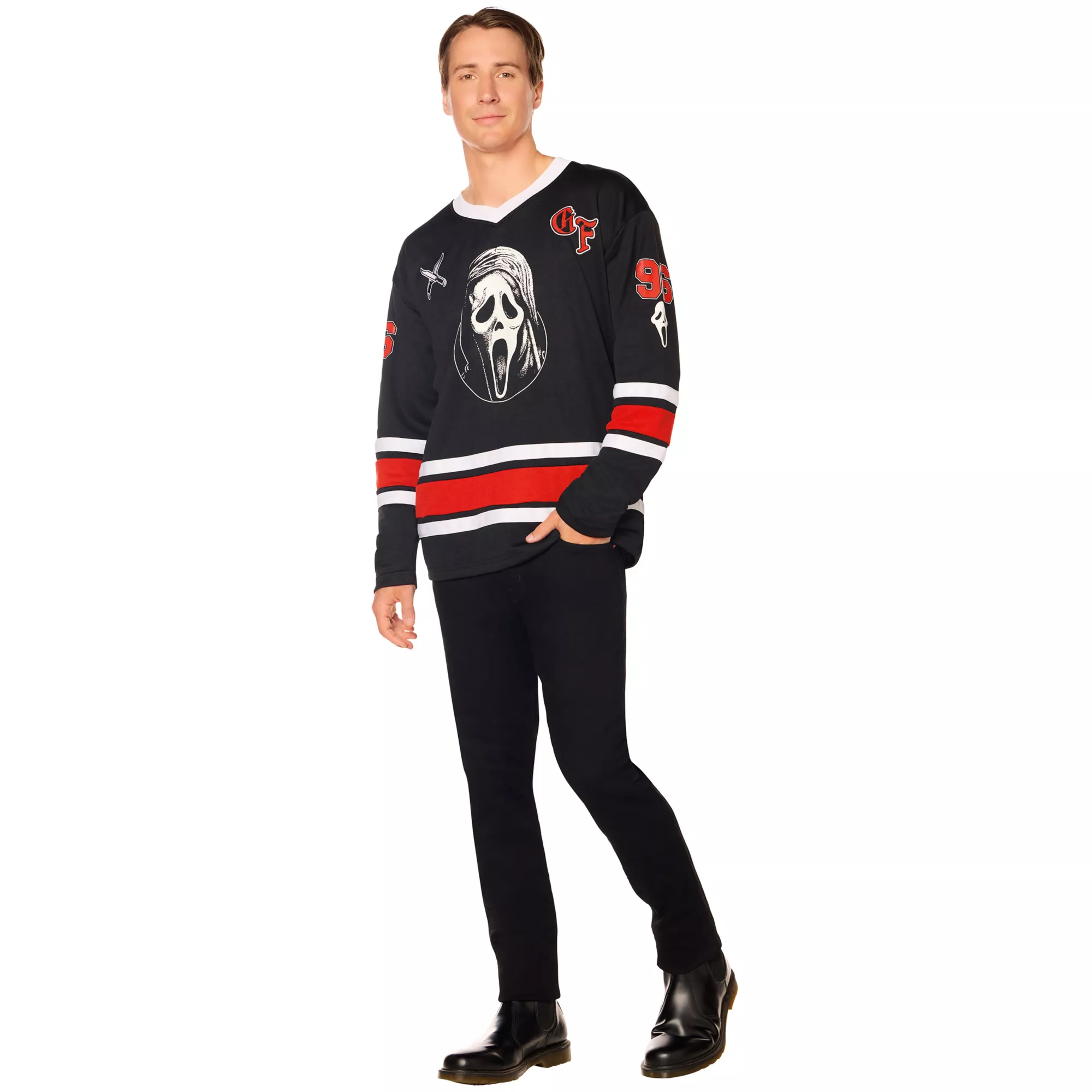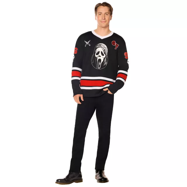 Nothing says horror like a classic hockey jersey! You'll always be showing off your fandom for Ghost Face with this officially licensed Ghost Face Hockey Sweater. Featuring the iconic slasher on the front, this horror themed hockey jersey is just what you need for your next Halloween outfit.