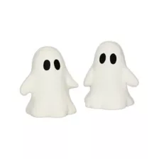 Add some scary cute vibes to your space with this Ghost Salt and Pepper Shaker Set! This adorable set features two ghost salt and pepper shakers, designed to hold hands.