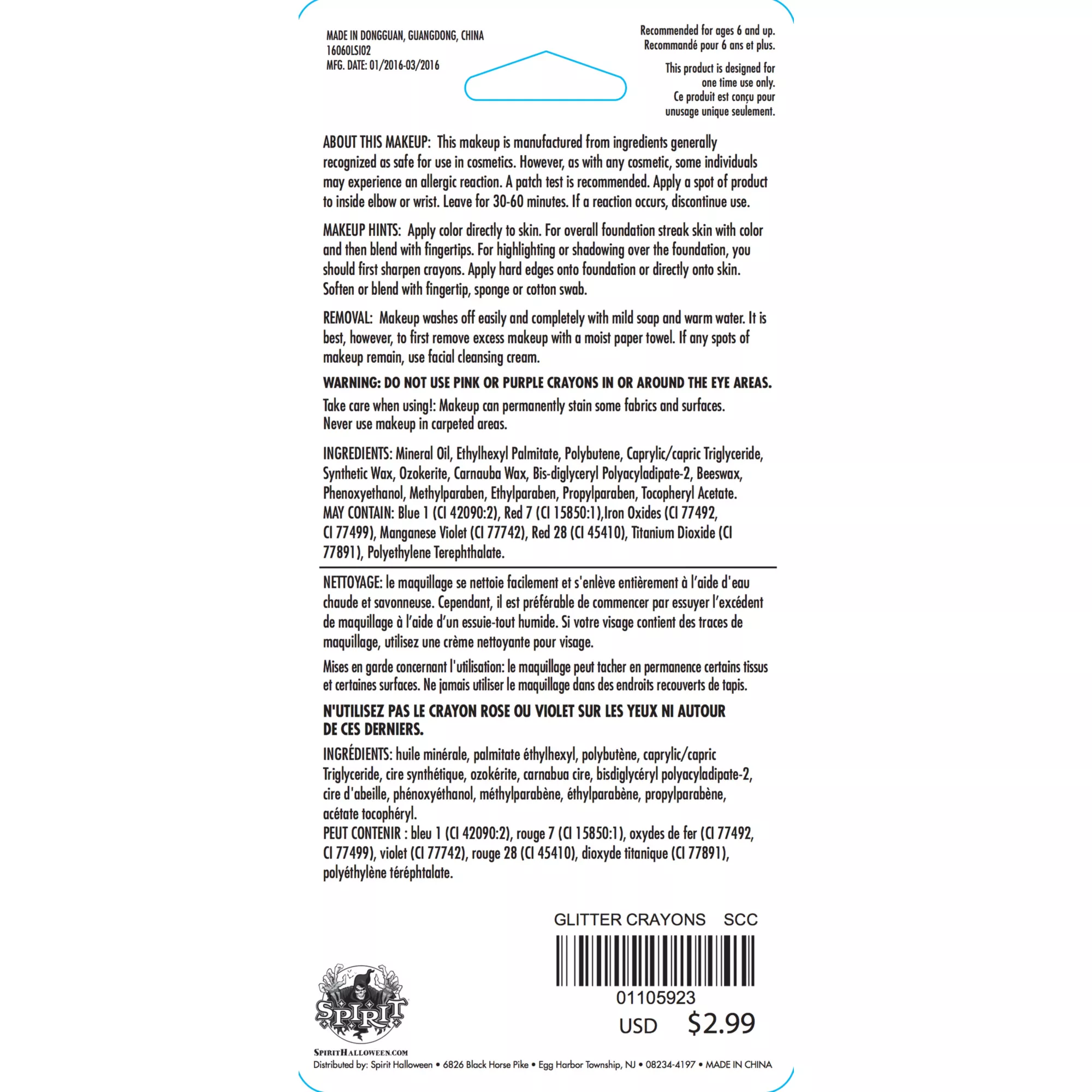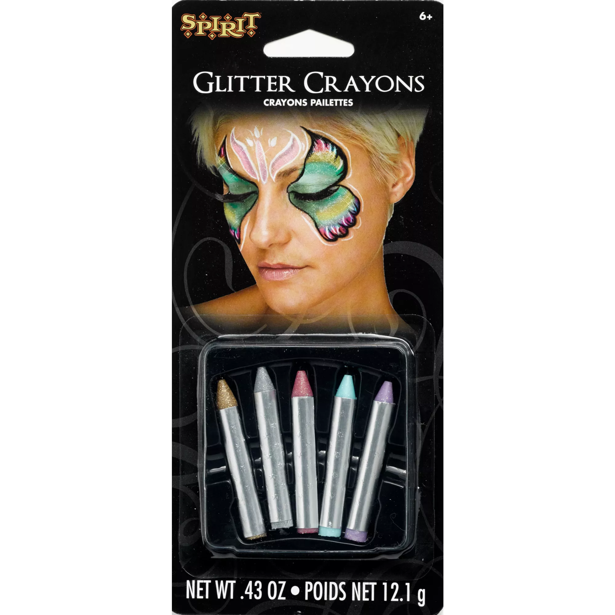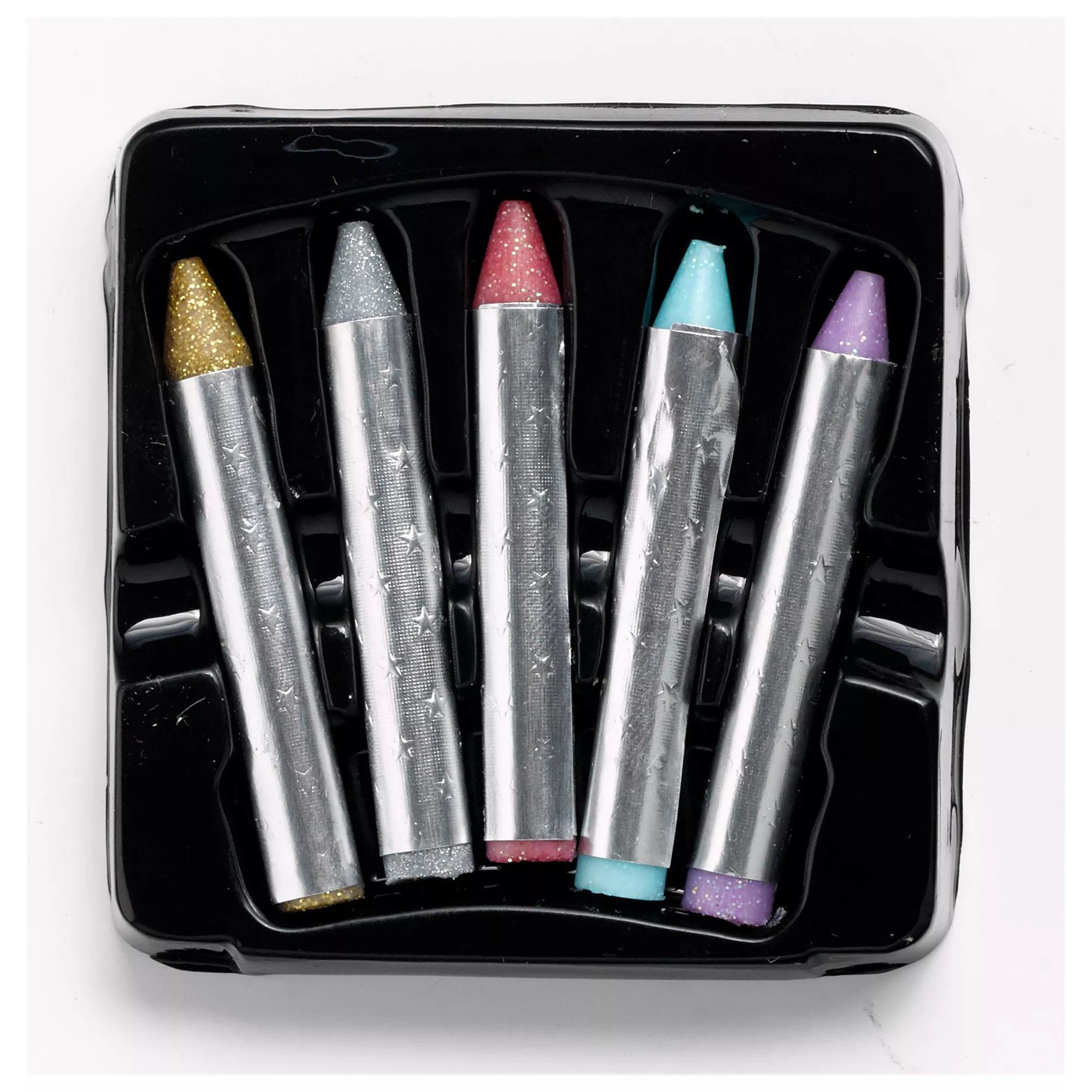 Express yourself when you use this set of five Glitter Crayons to make the magical, whimsical and pretty face of your choice. Have fun with this colorful makeup and let your imagination take flight!