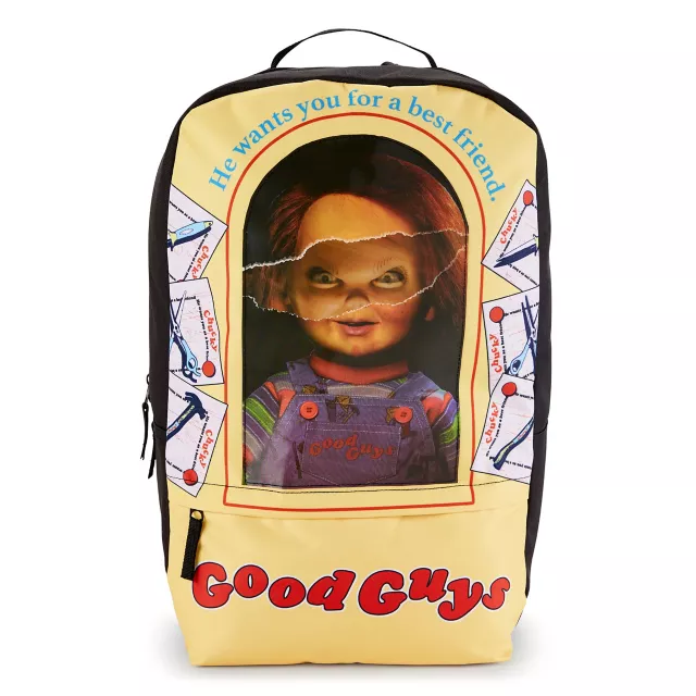 Roam the halls in killer style with this official Good Guys Chucky backpack! This roomy backpack features your favorite horror movie killer doll and has plenty of room for all your books and gear.