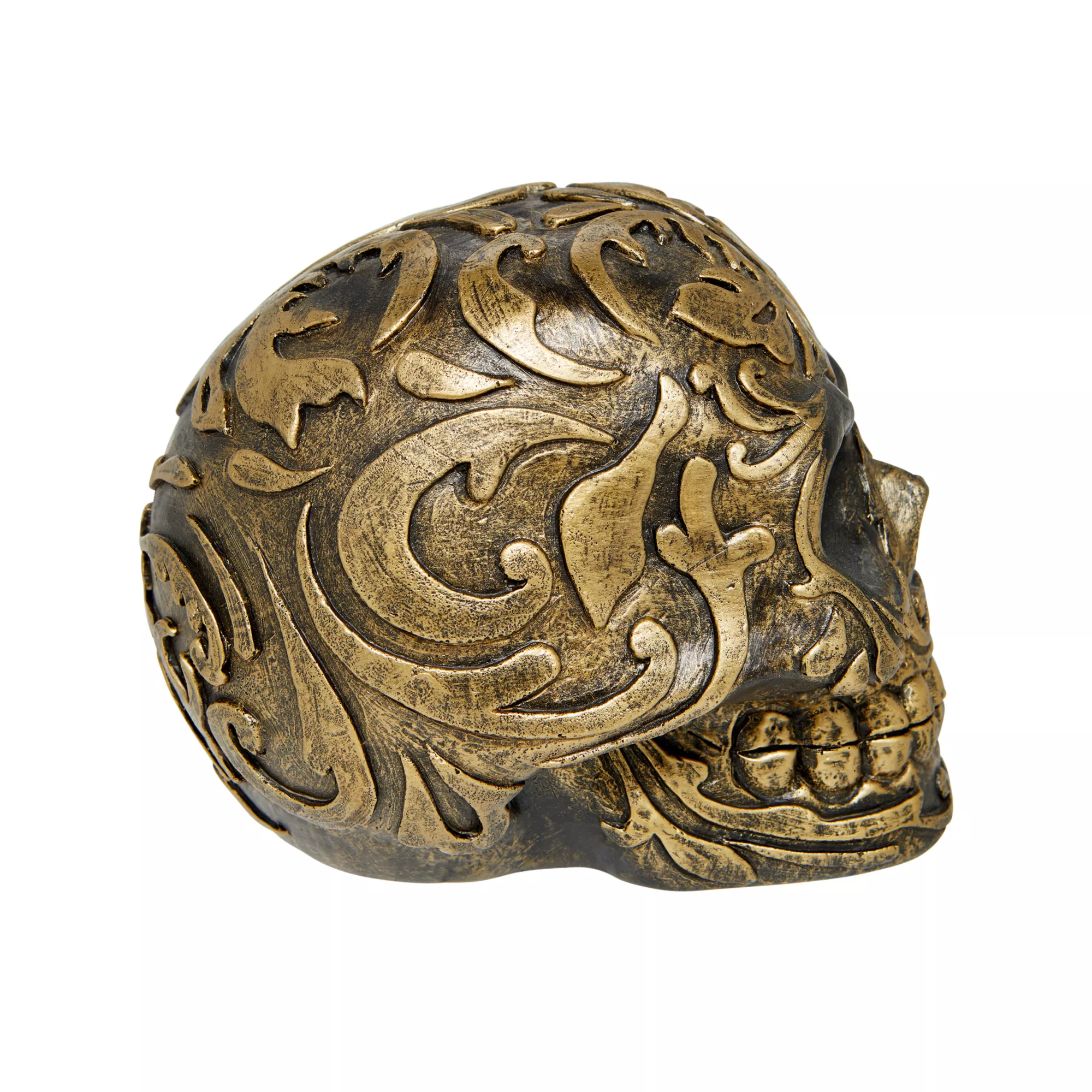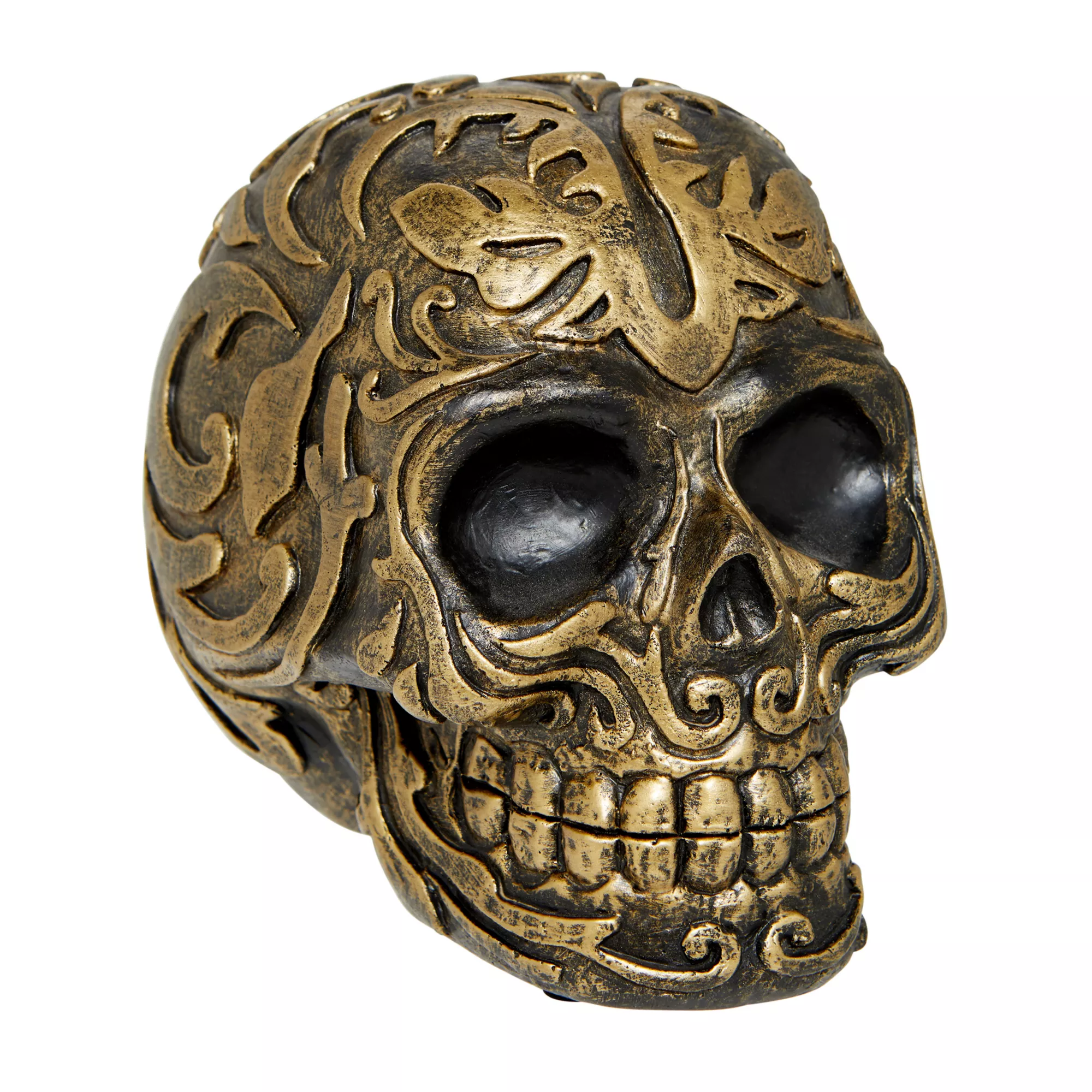 Add some noir style to your home decor this Halloween with this Gothic Noir Gold Skull. This stylish piece of decor is sure to add some skeletal style to any room and is perfect for getting in the Halloween spirit.