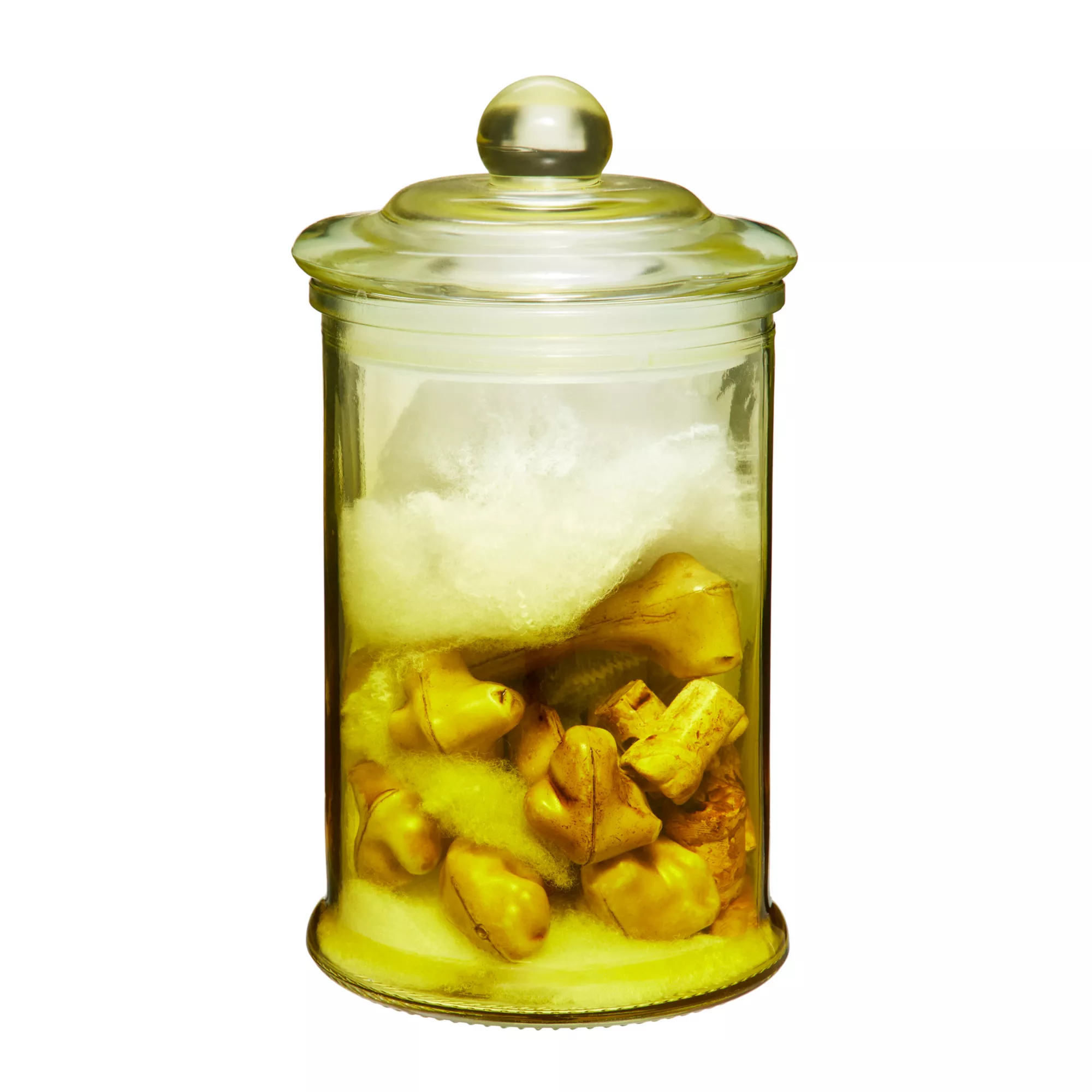 Ever wonder where the tooth fairy puts your teeth after she collects them? Spook up your home with this specimen jar full of the teeth of her victims.
