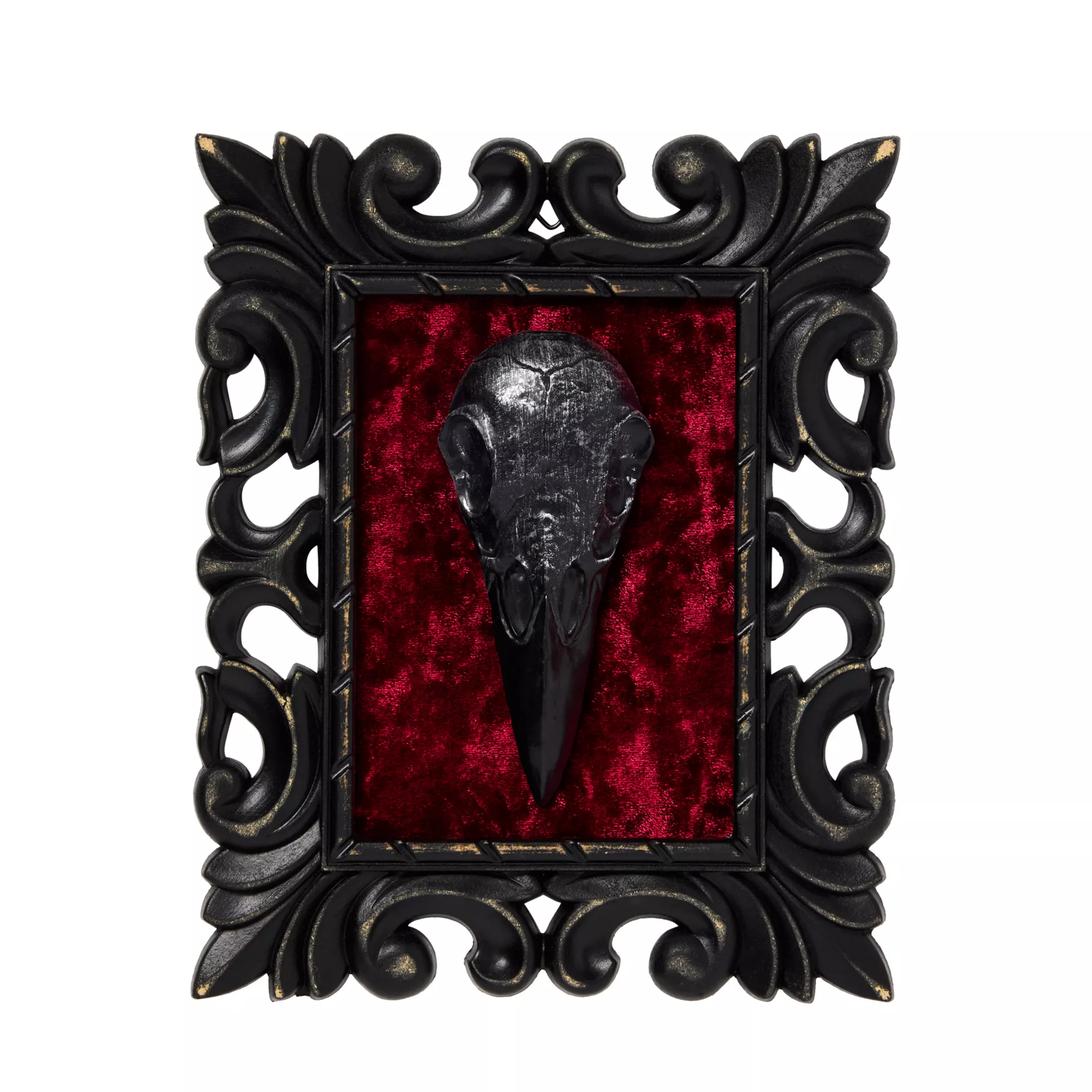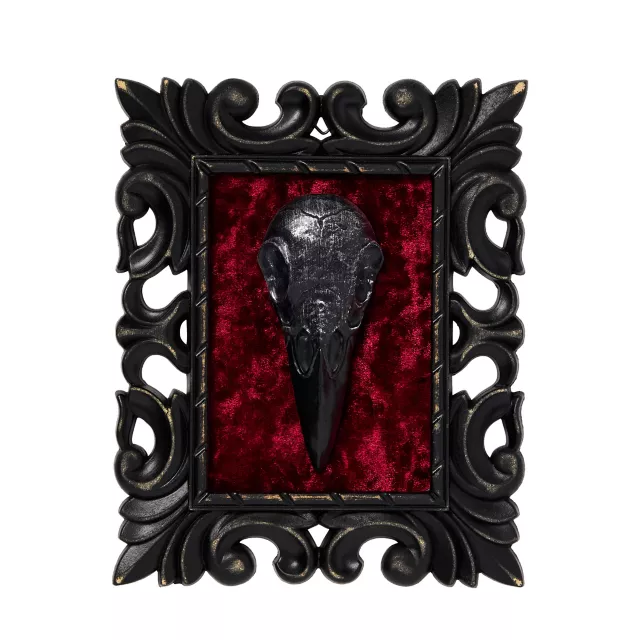 Decorate you haunted gallery with this decadent Gothic Noir Velvet Raven Skull Sign. This ornate picture frame design features a raven skull and a velvety red background.