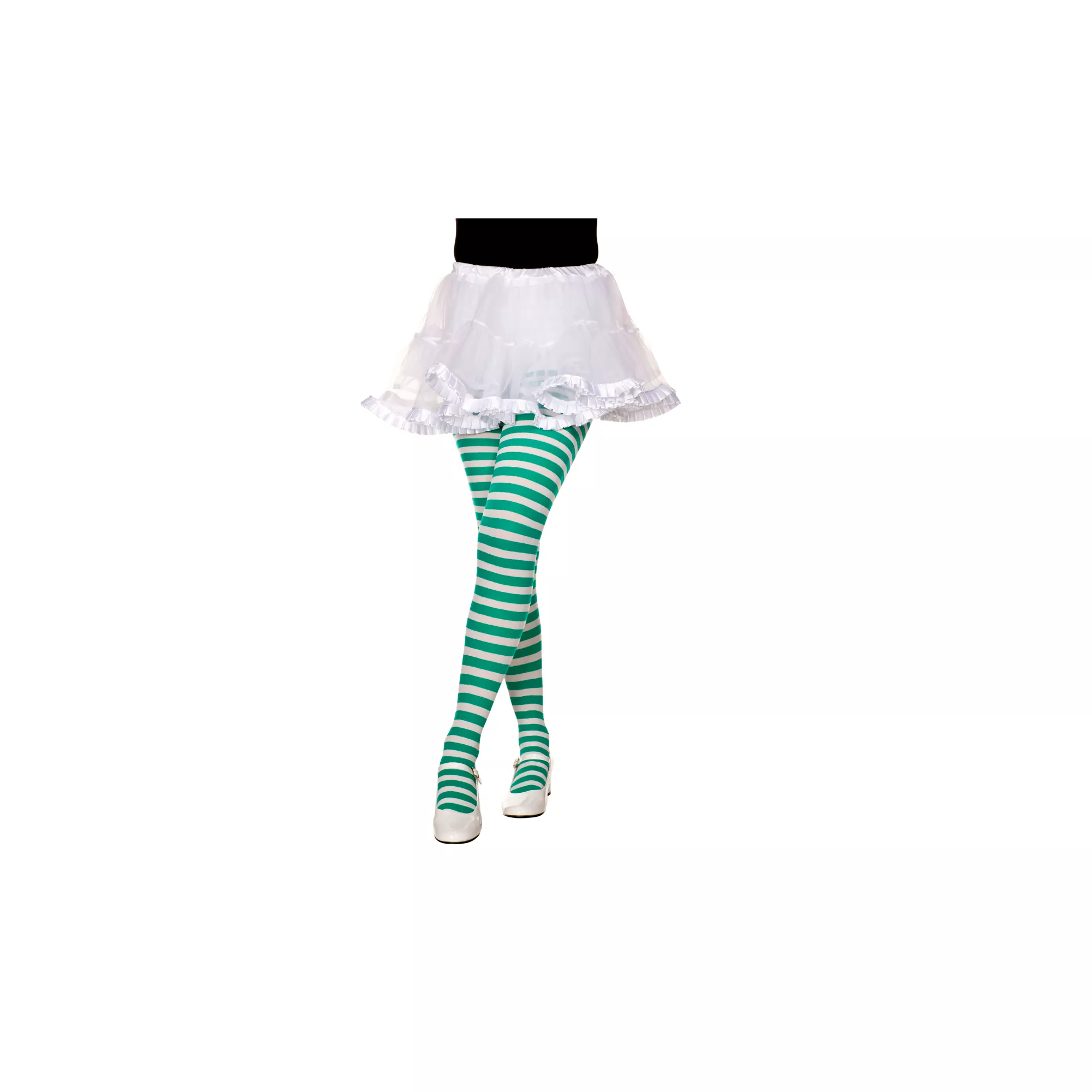 Get in the spirit when you wear these festive green and white striped girls tights to complete your Halloween costume.