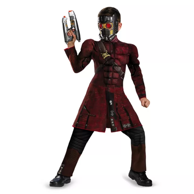 Plan out your perfect Halloween and execute the strategy when you dress in the officially licensed Guardians of the Galaxy Star-Lord Muscle Chest Child Costume. Enter the Marvel Universe with this character detailed, muscle jumpsuit that comes complete with a character half mask.
