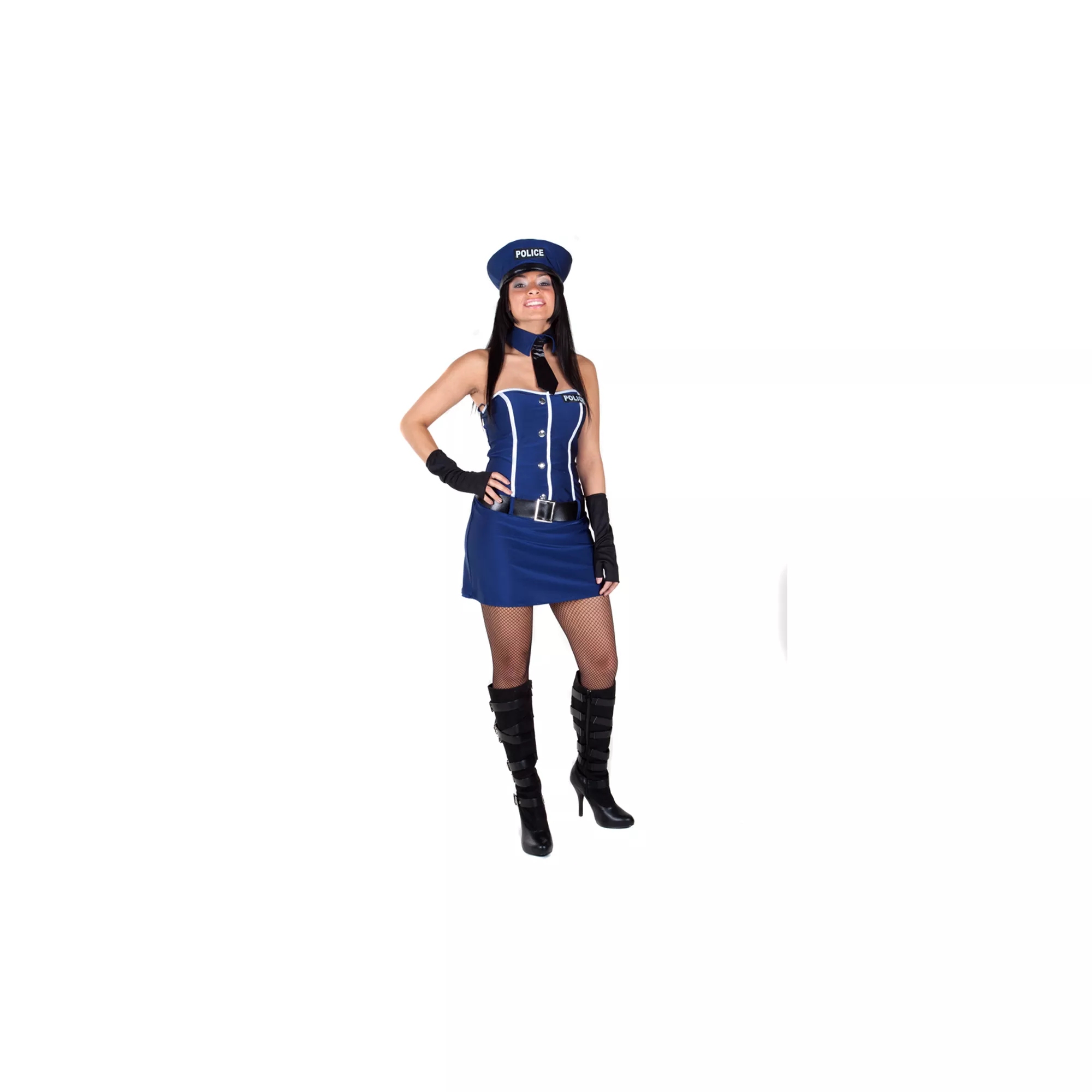 Get ready to book 'em when you wear this Handcuff Hottie Cop adult womens costume. The blue and white uniform-inspired mini dress of this cop costume for women features a black tie. A blue hat and black gloves complete this sexy womens costume.