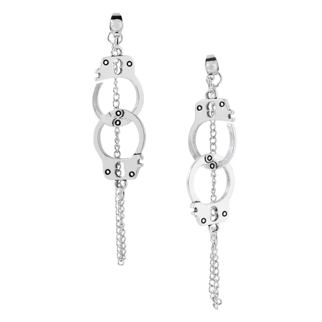 Have you been bad? Or maybe you're a loyal supporter of law enforcement. Either way, show it off when you wear these Handcuff Earrings. The creative set of dangling handcuffs feature fish hook closures and measure to be 2.5 inches long.
