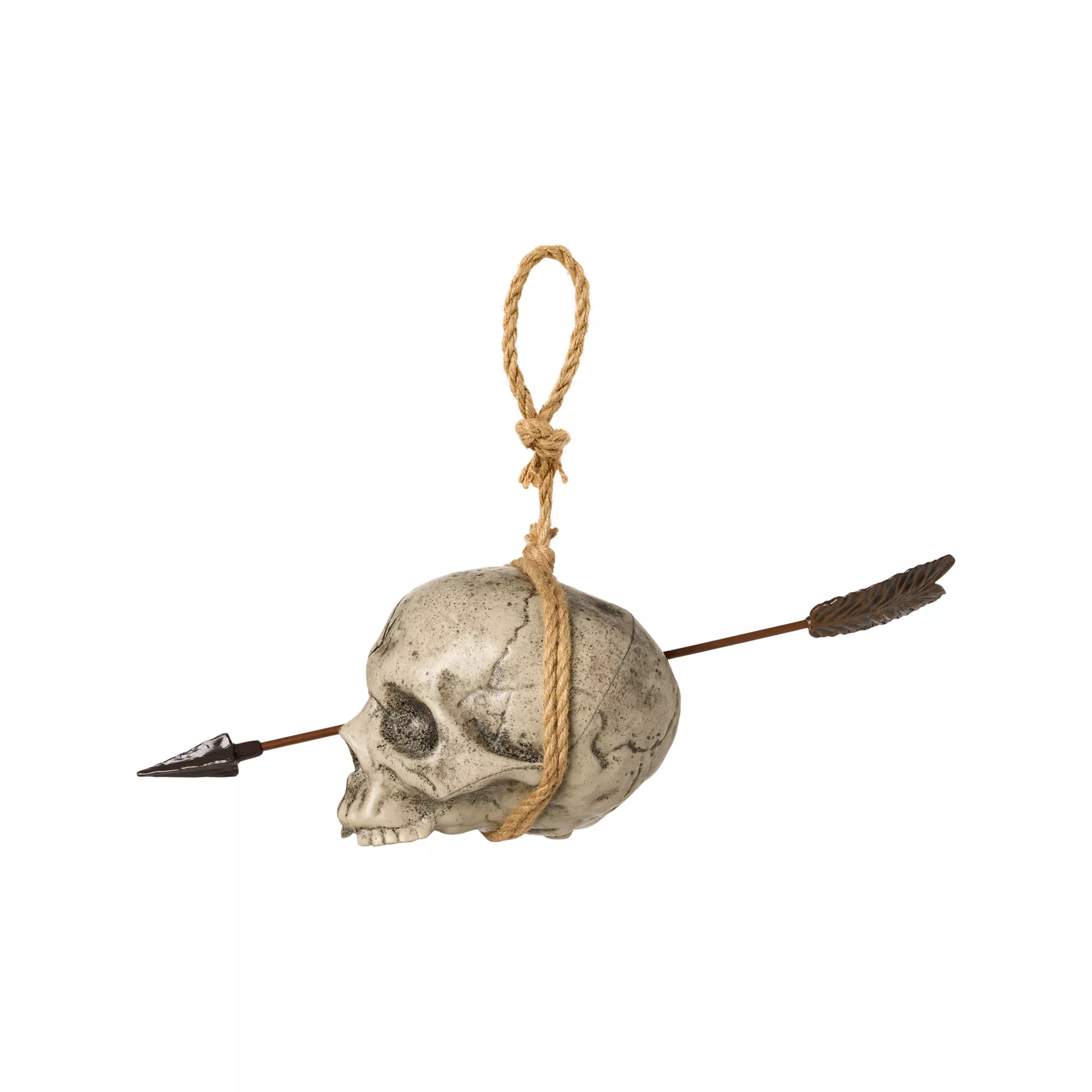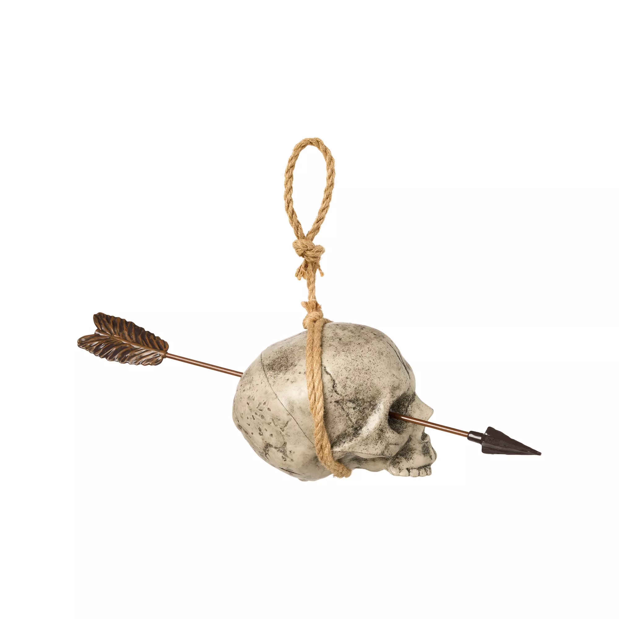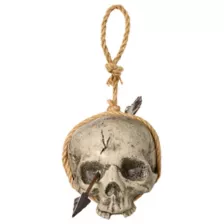 This poor soul certainly left it all on the battlefield. Create a deadly atmosphere at your haunted home when you add this Hanging Arrow Skull to your décor collection.