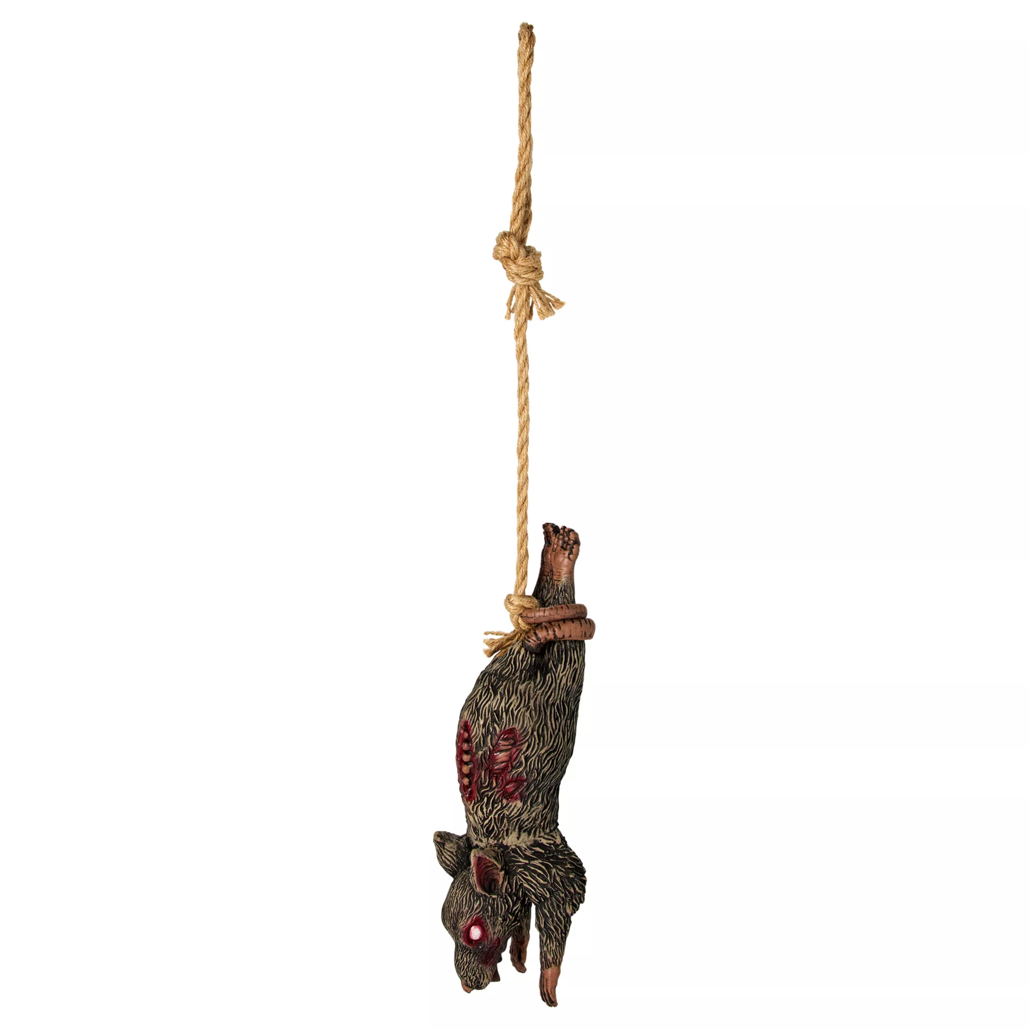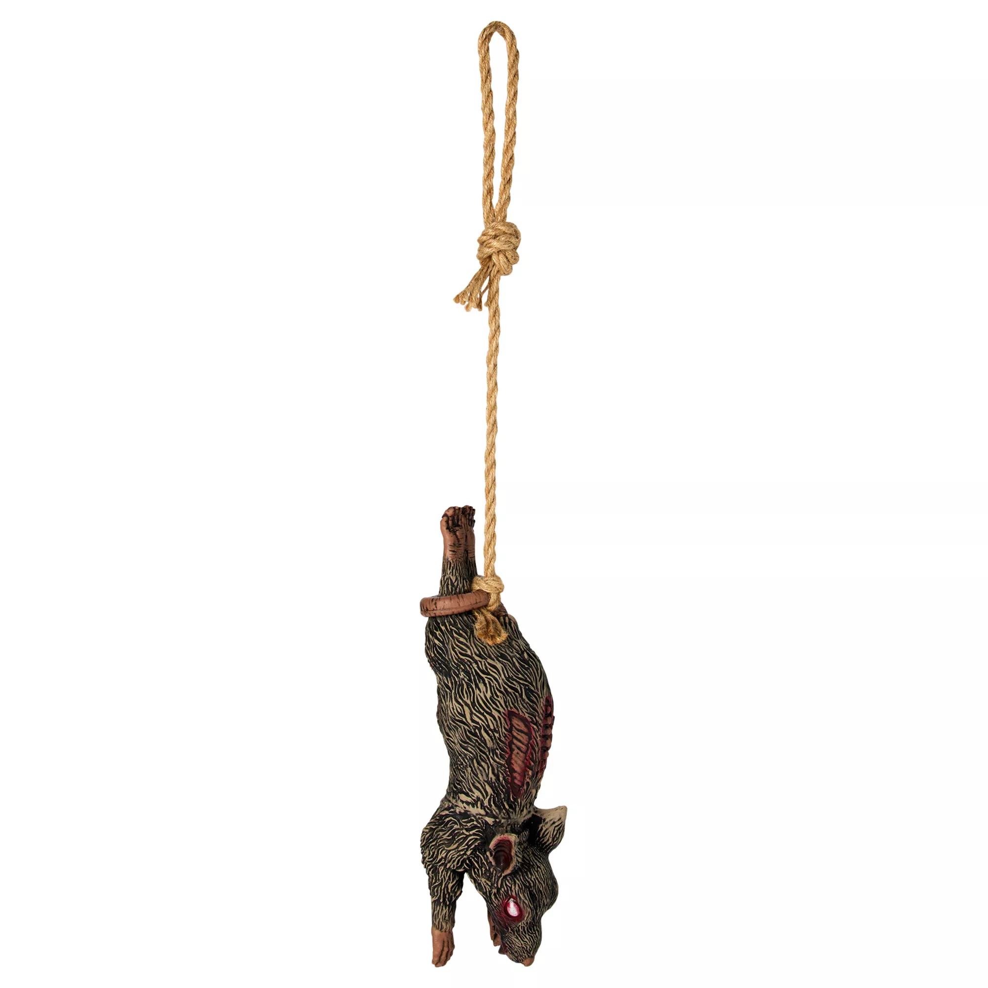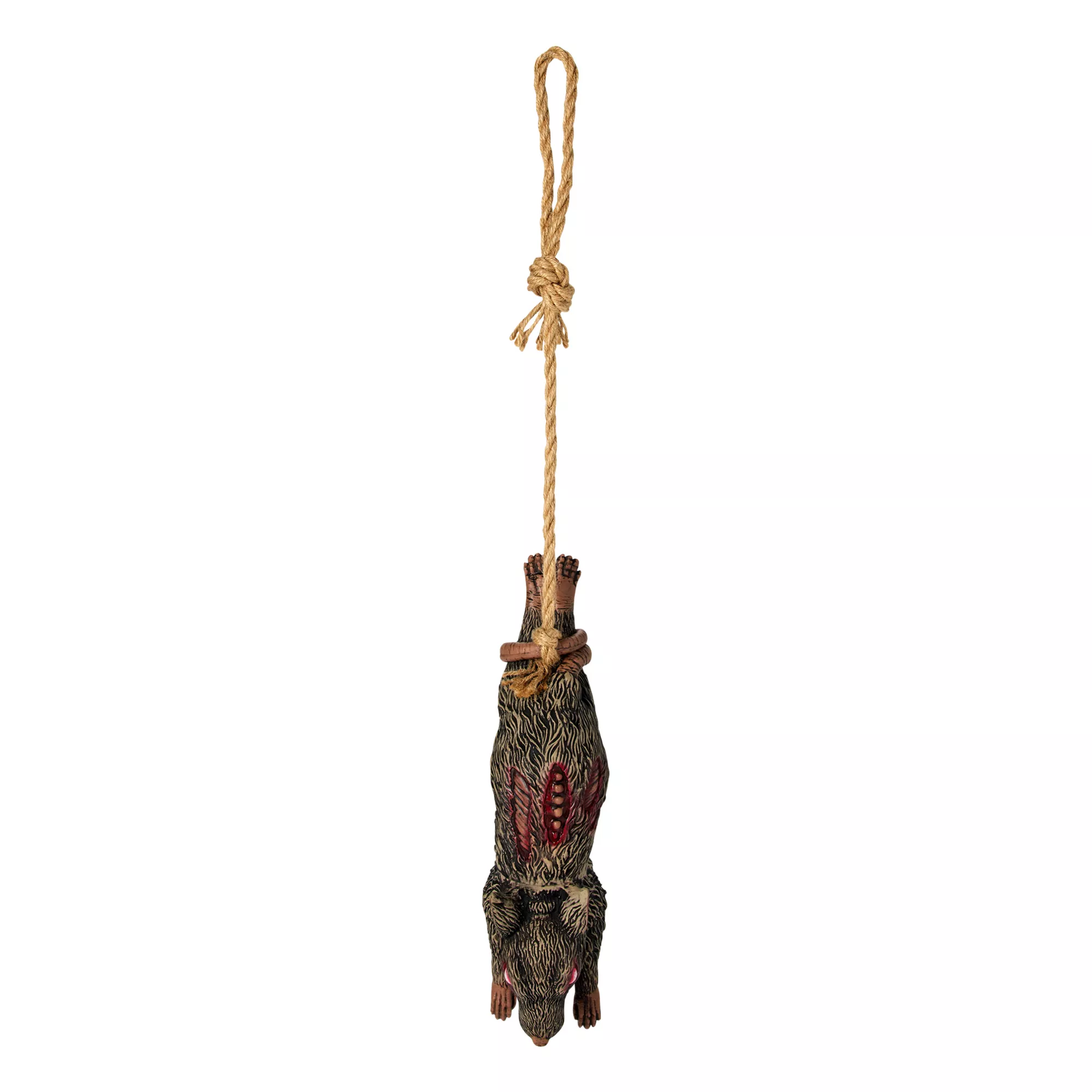 Have you guests' blood run cold when they see this Hanging Zombie Rat! Hang this bloodthirsty rodent in your space to complete your spine-chilling menagerie of horrors.