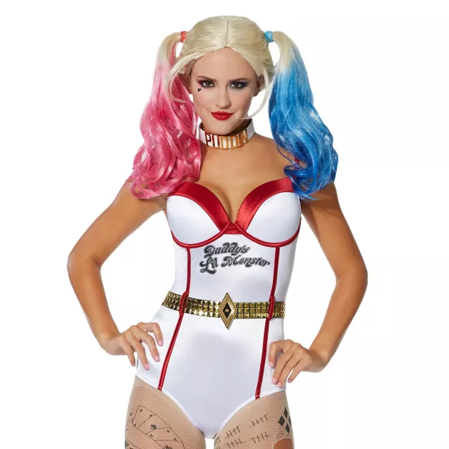 Daddy's little monster isn't messing around! This cosplay quality bodysuit will have you right by Mister J's side! Straight out of the Suicide Squad movie, the design features Harley Quinn's signature look with a studded belt accent! The Suicide Squad will never be the same.