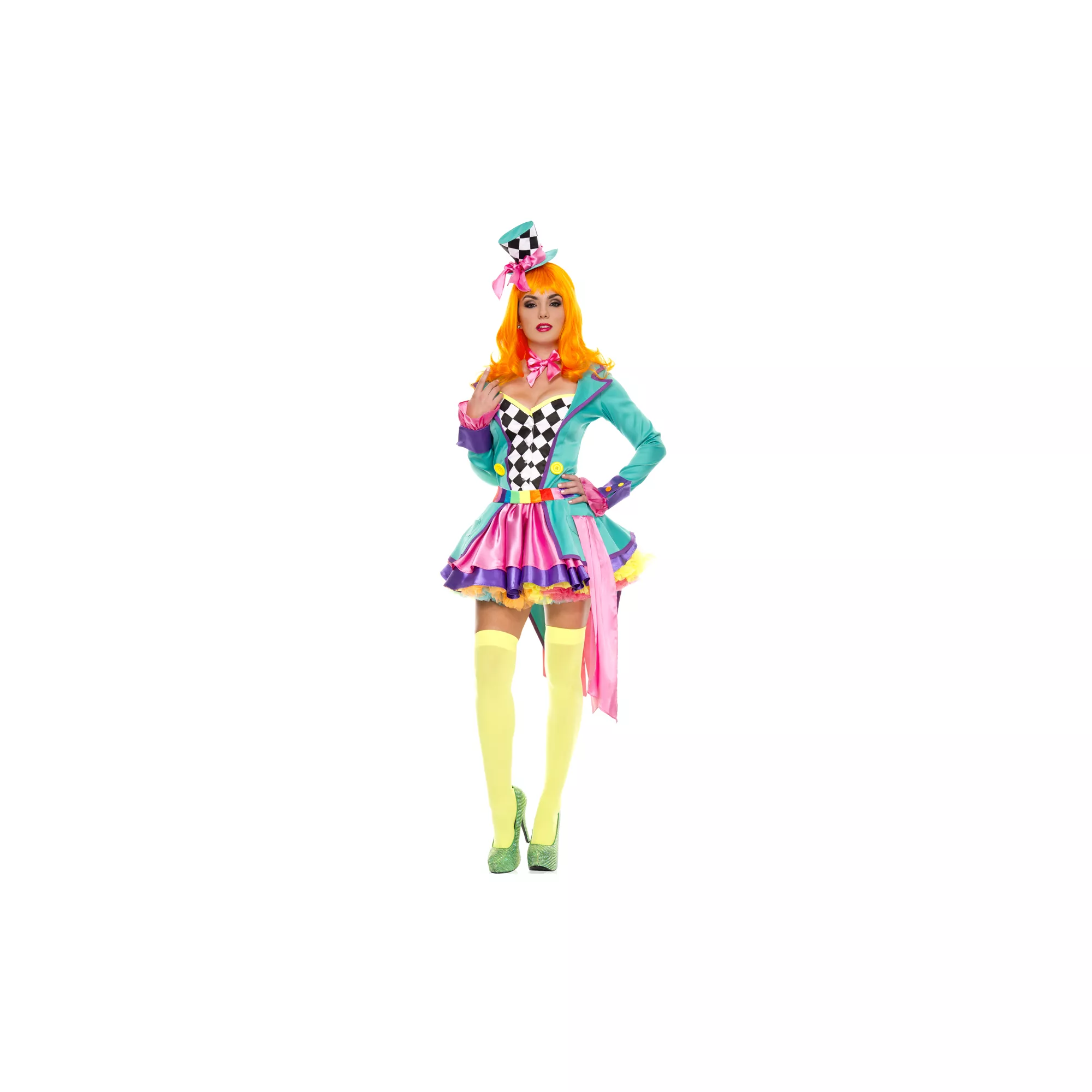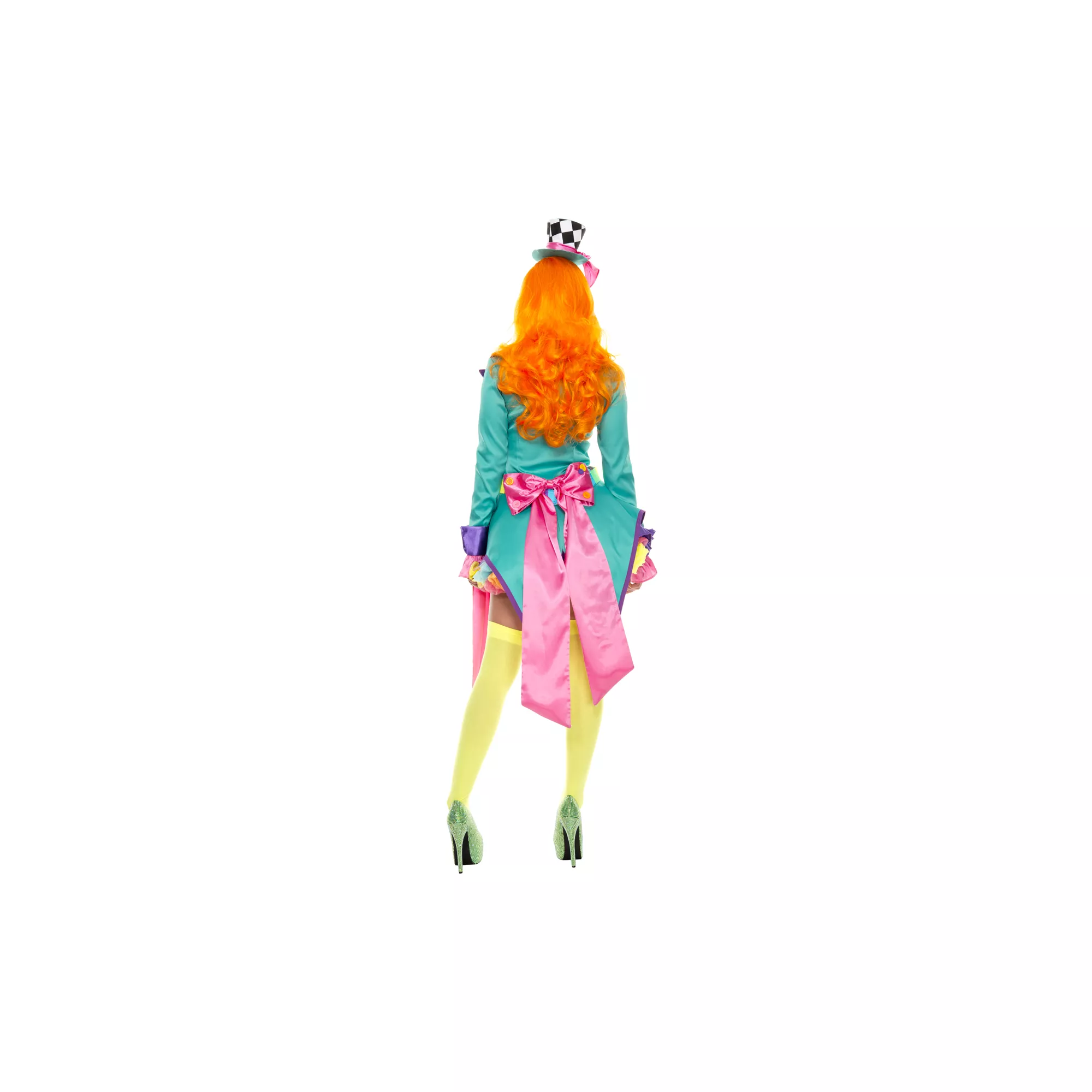 Set yourself up for a night of crazy fun when you decide to wear this Hatter Hottie Adult Womens Costume. The blue trench coat dress comes complete with mini top hat, neck piece, skirt and checkered top. It's certainly time for tea!