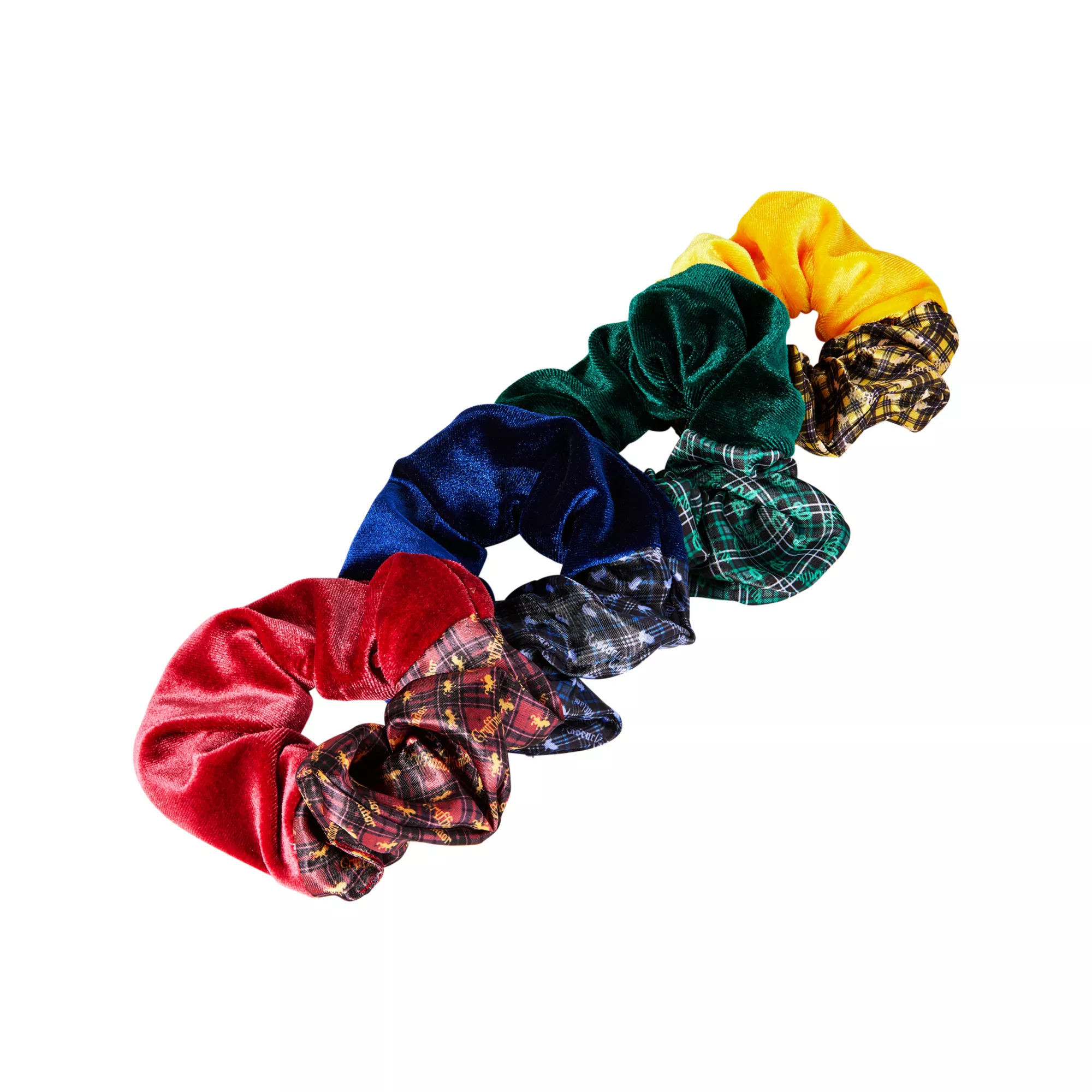 Embrace your inner wizard and accessorize your look with this officially licensed Four-Pack of Hogwarts Scrunchies! Each scrunchie is designed after a different branch of Hogwarts. Choose your favorite and show love for Harry Potter!