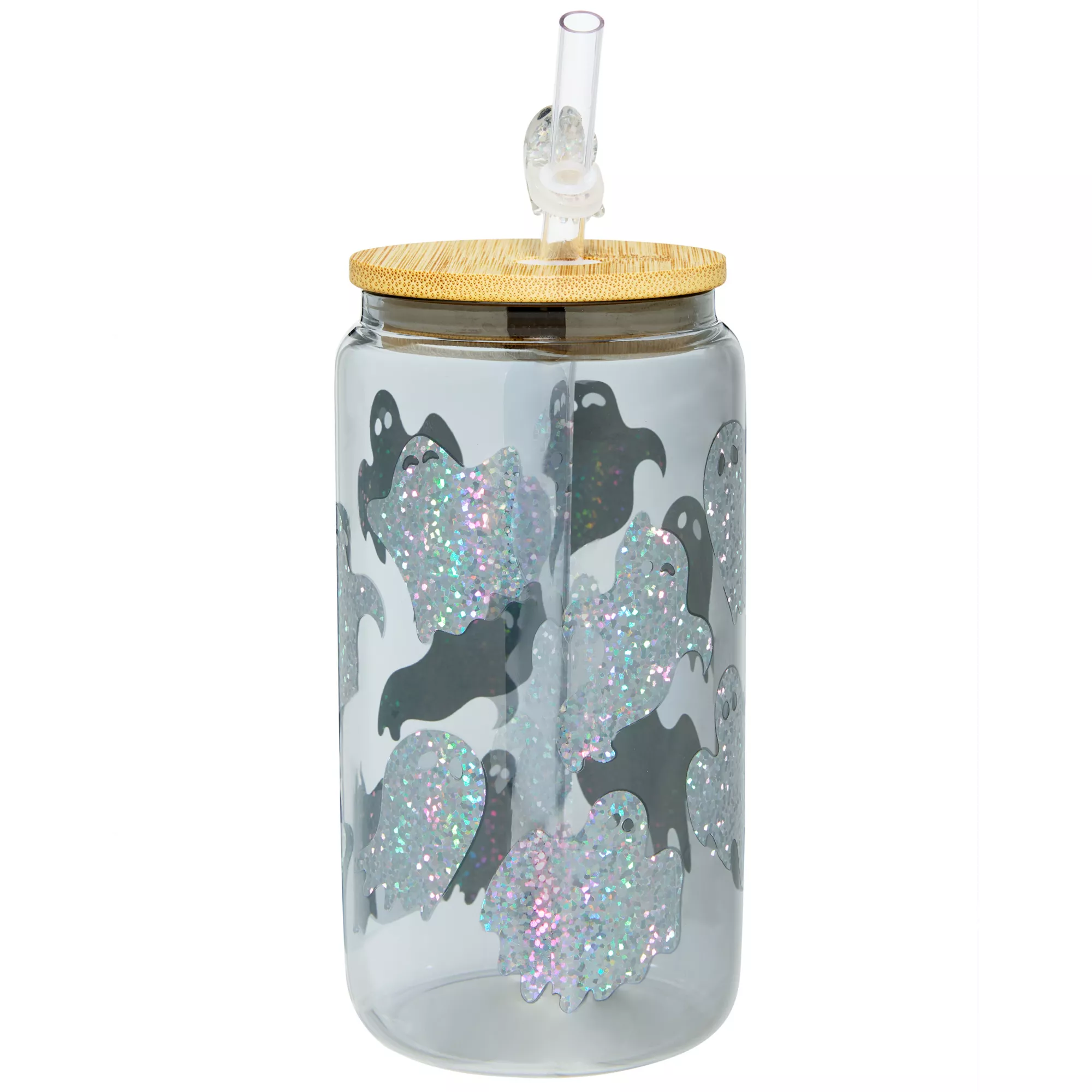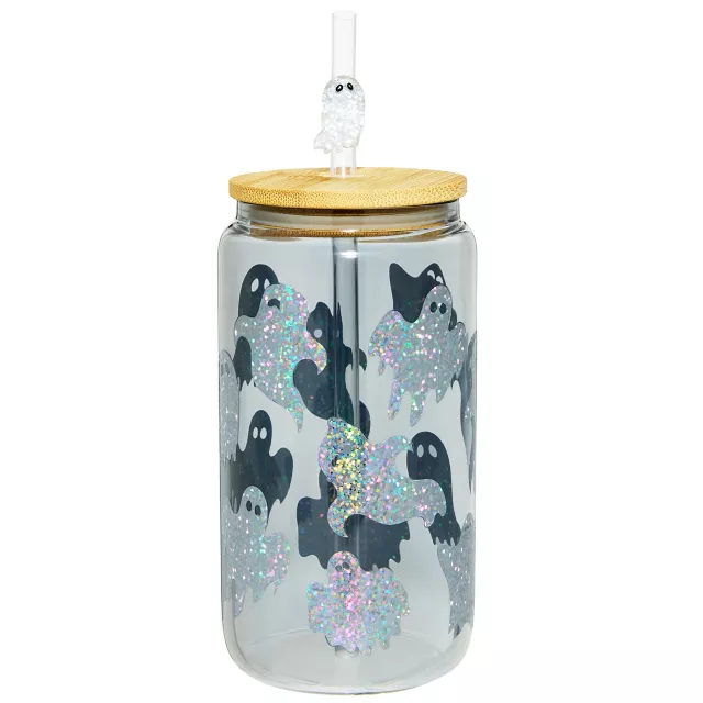 I’m just here for the boos! Show off your Halloween spirit with this Holographic Ghost Glass Cup with Straw. This glass tumbler is perfect for water, iced coffee, and more!