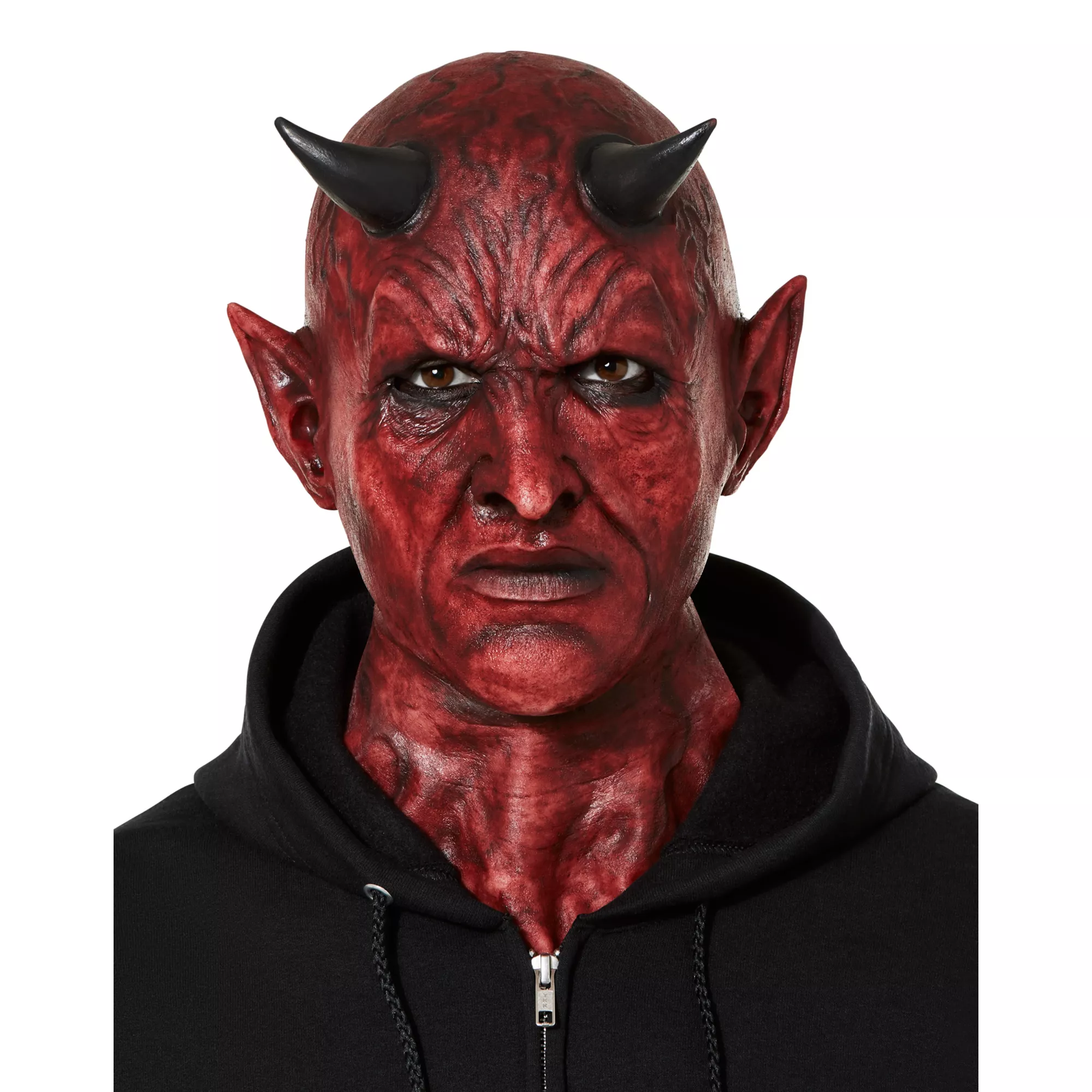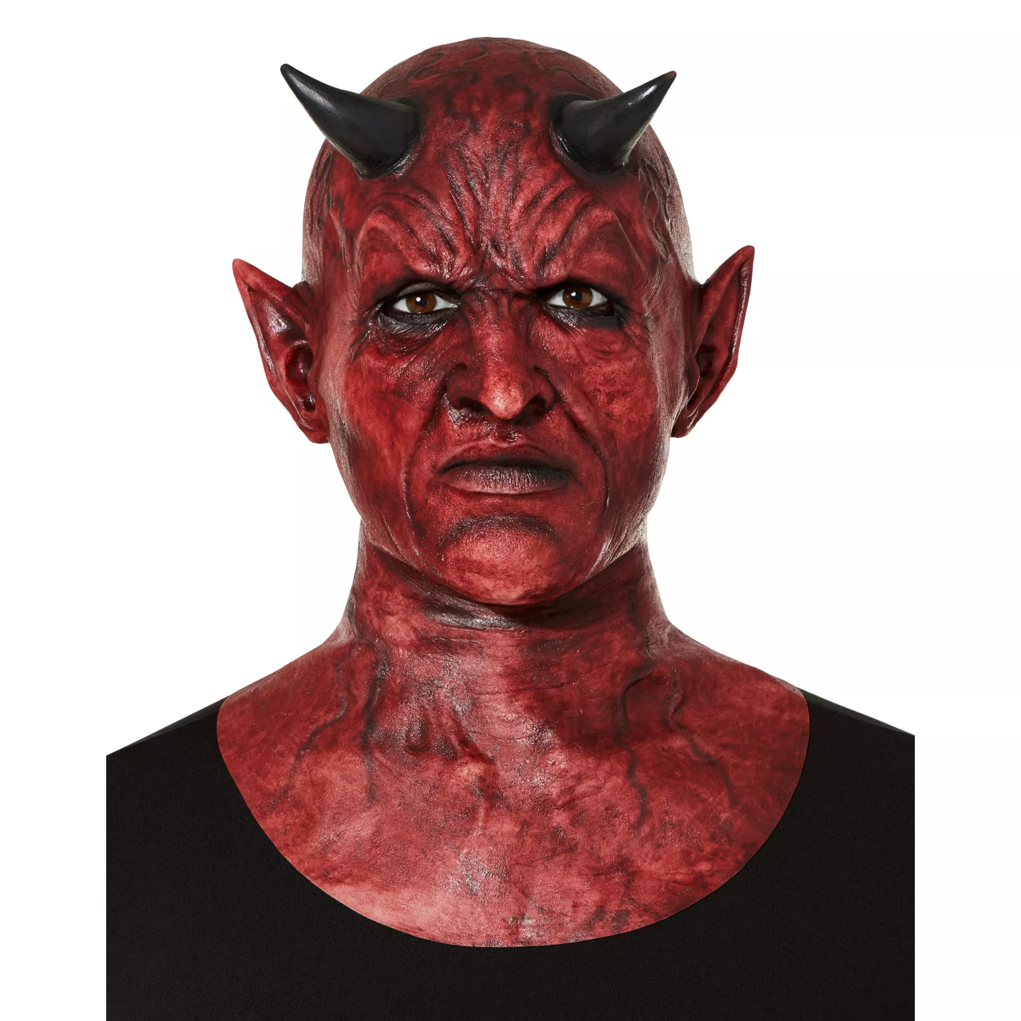 Take your Halloween costume to the next level with this officially licensed Hyper Realistic Lucifer Mask. Rule the underworld like the devilish king you are when you slip into this high-quality, durable latex mask that fits and feels like a second skin, featuring comfortable eye and mouth openings, synced movements with mouth and face muscles, and extreme detail. The extended neck bib comes to the shoulders, allowing you to tuck into your shirt seamlessly. With accentuated deep red accents, veins, wrinkles, black horns, and pointed ears, this mask is perfect for costume parties, cosplay events, and more!