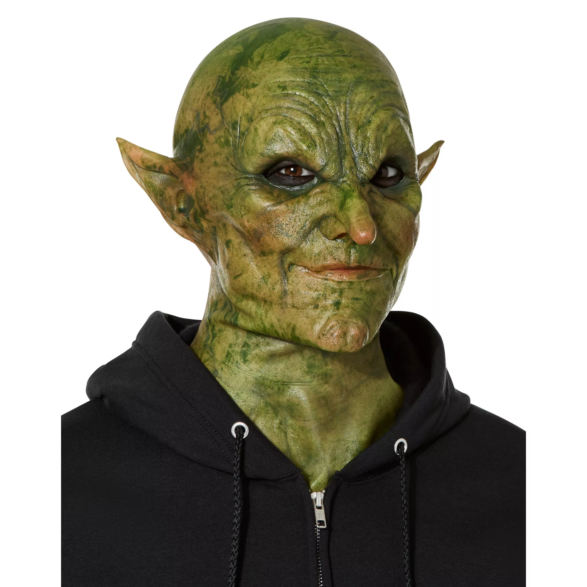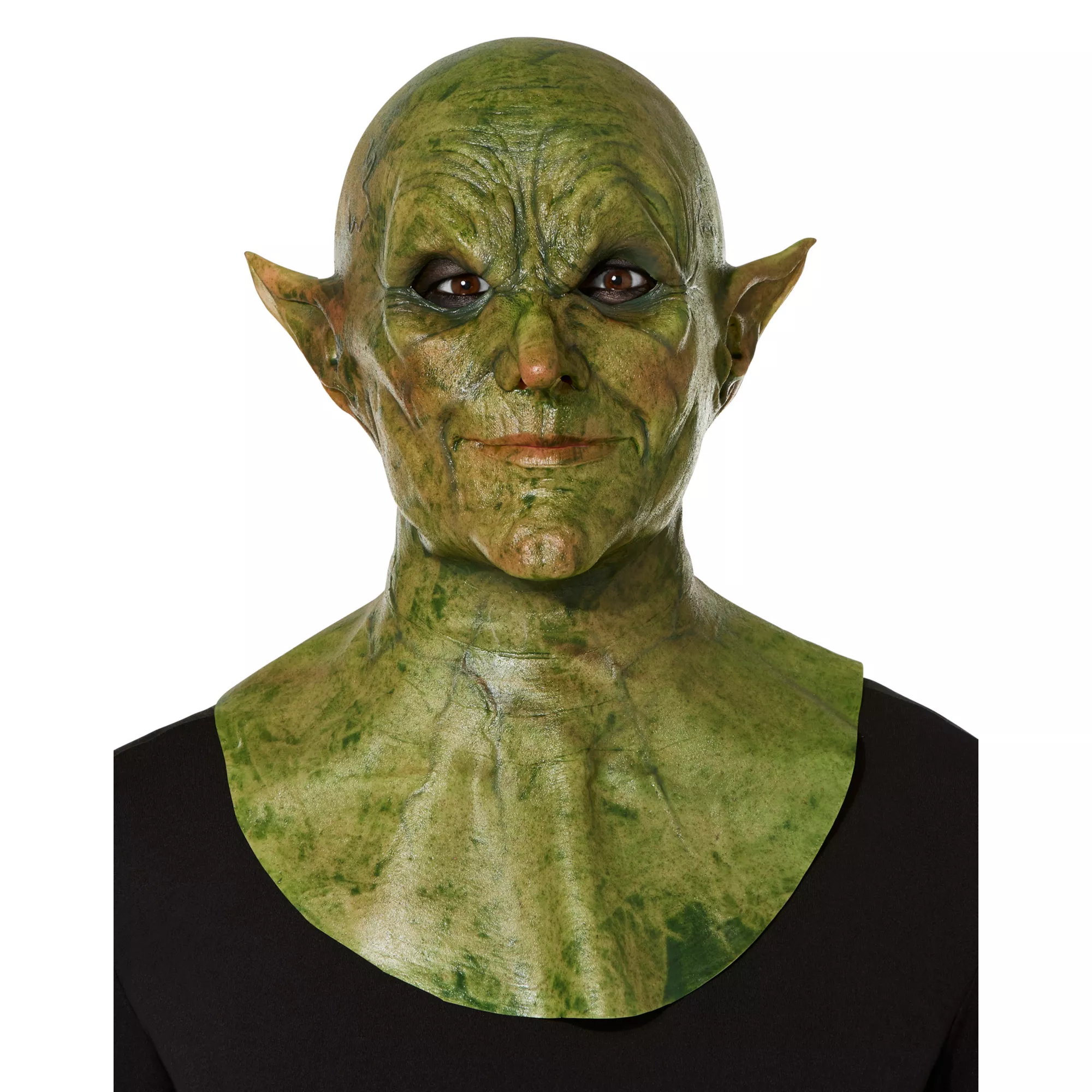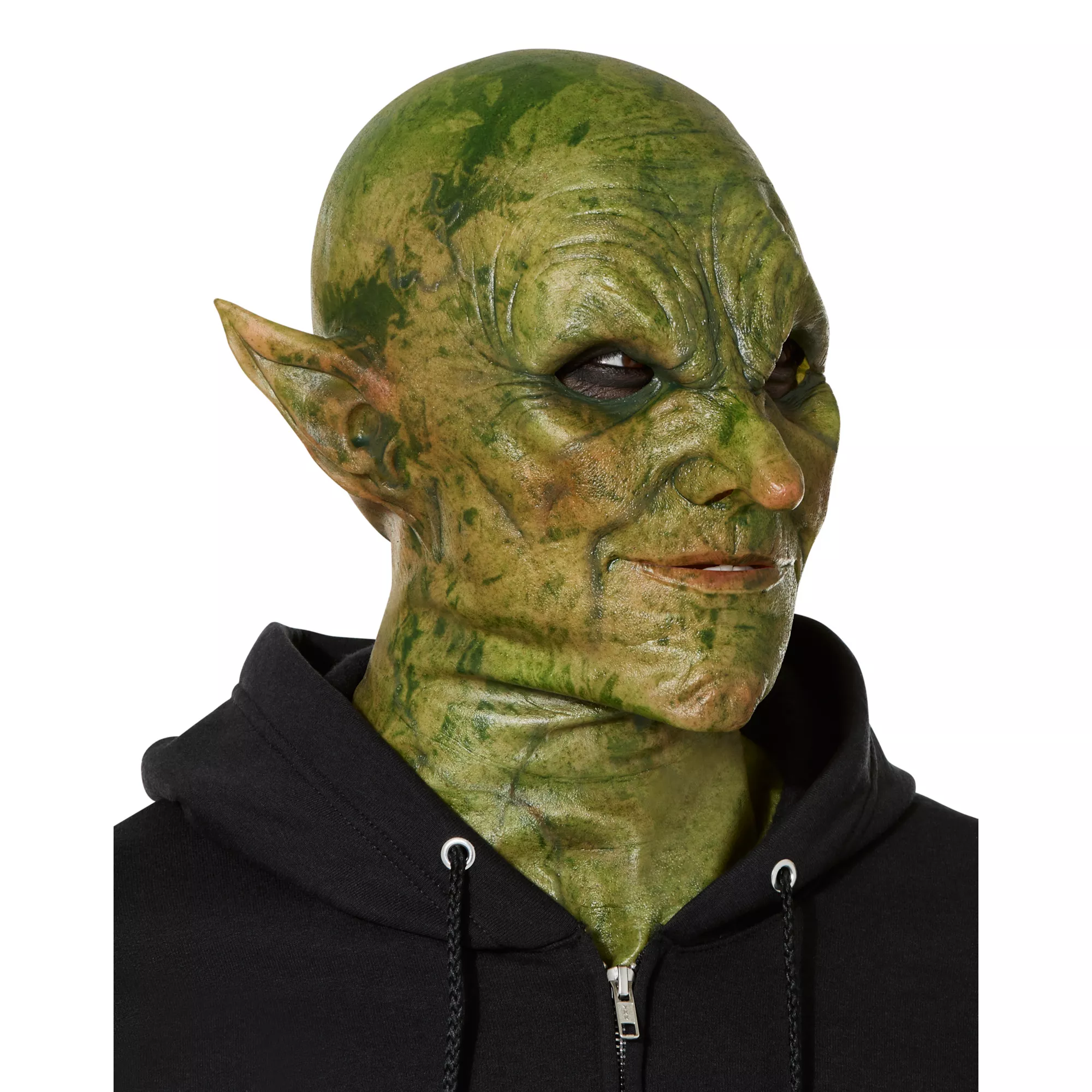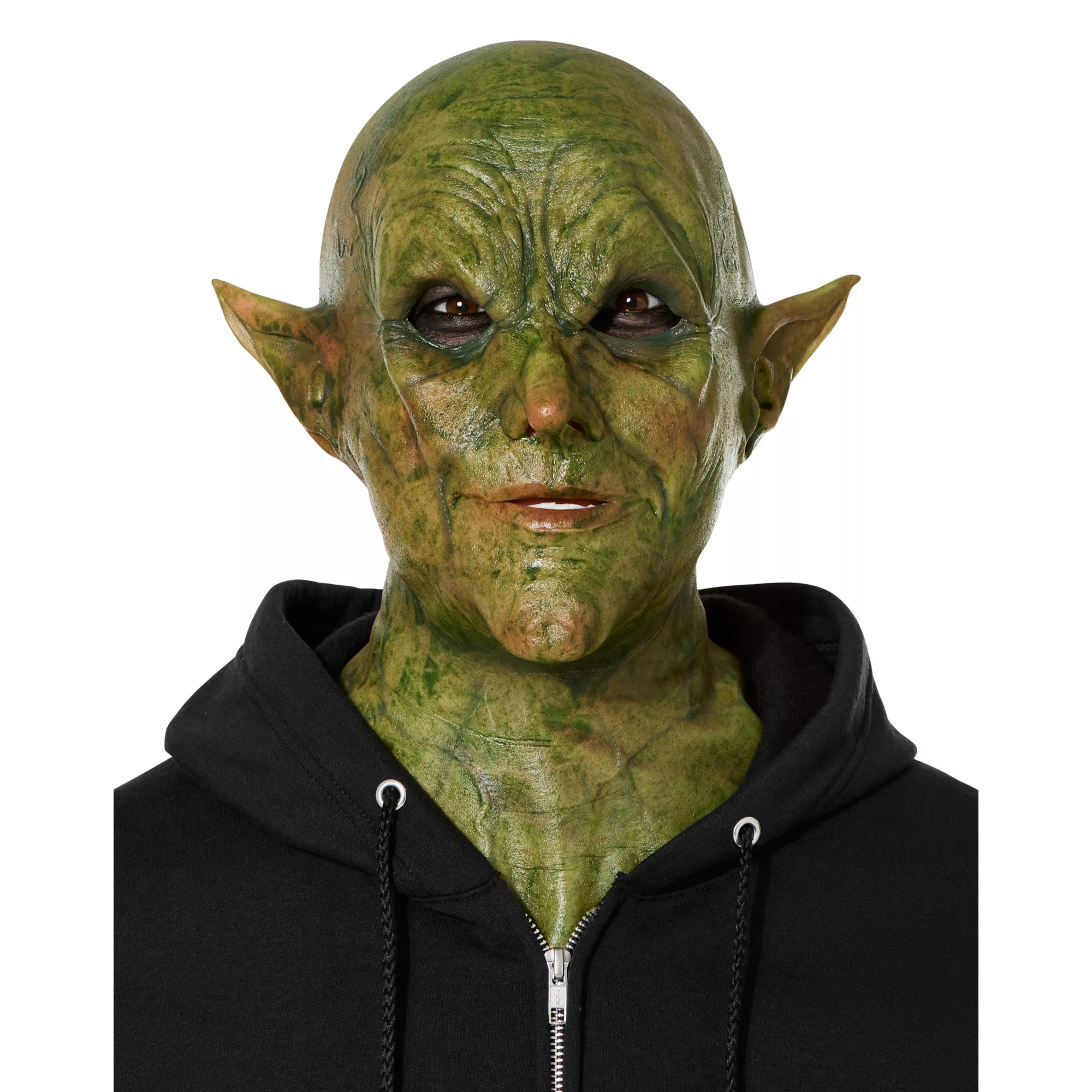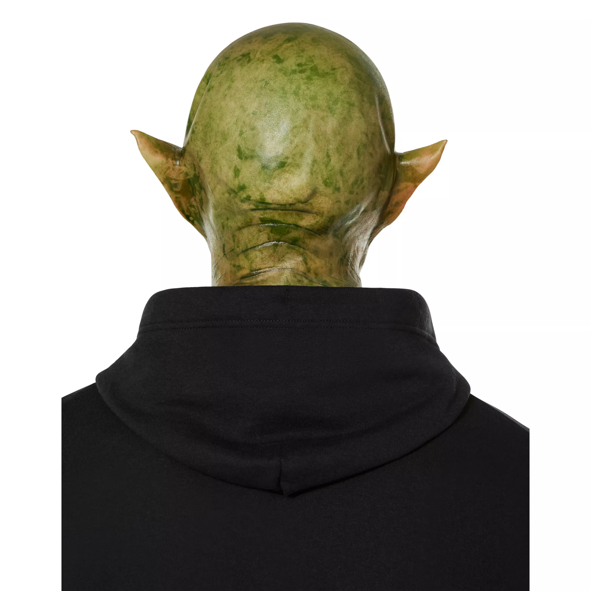 Take your Halloween costume to the next level with this officially licensed Hyper Realistic Tek'Zik Goblin Mask. Made from a natural rubber latex material, this revolutionary design transforms you into a savagely fierce, menacing green goblin in seconds. This high-quality, durable latex mask feels and fits like a second skin, featuring comfortable eye and mouth openings, synced movements with mouth and face muscles, and extreme detail. The extended neck bib comes to the shoulders, allowing you to tuck into your shirt seamlessly. With accentuated dark green veins, wrinkles, a large nose, and pointed ears, this mask is perfect for costume parties, cosplay events, and more!