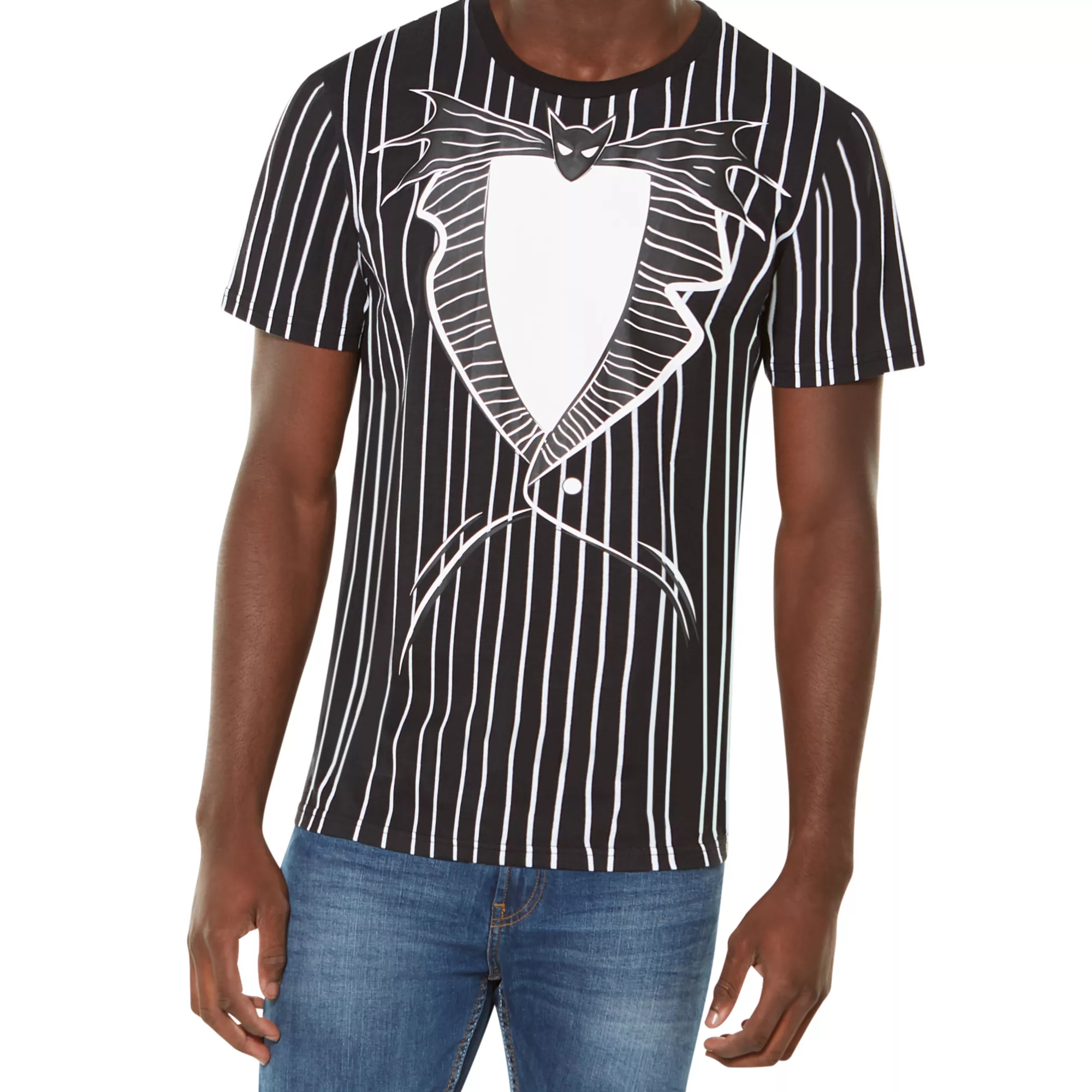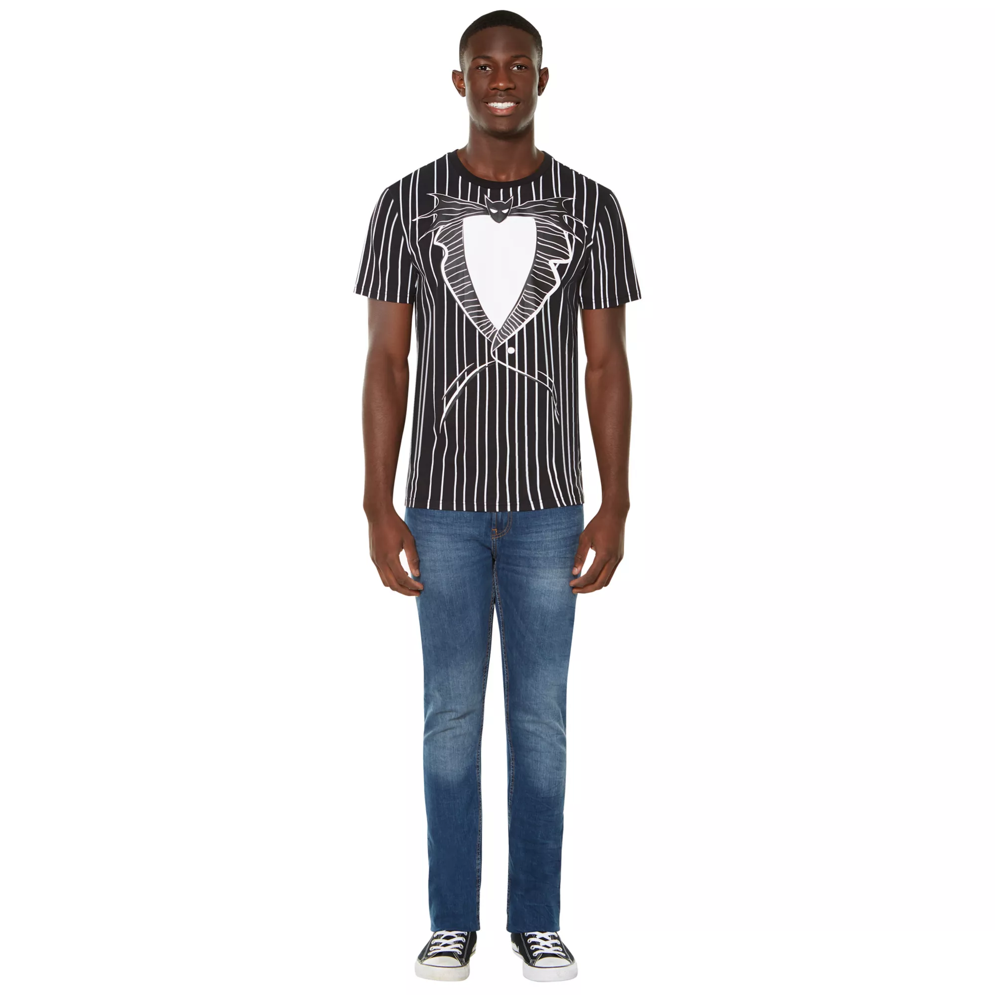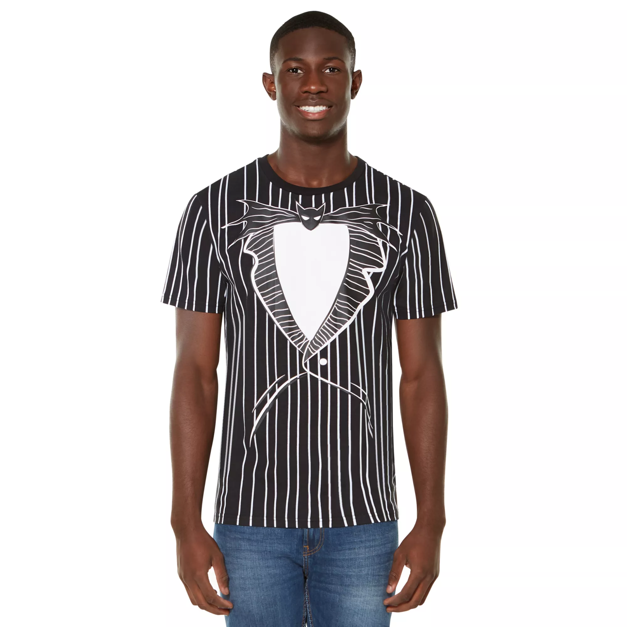 Transforming into the beloved Jack Skellington is as easy as slipping into this officially licensed The Nightmare Before Christmas I Am Jack Skellington T Shirt! Celebrate Halloween and Christmas simultaneously in this festive black and white t shirt.