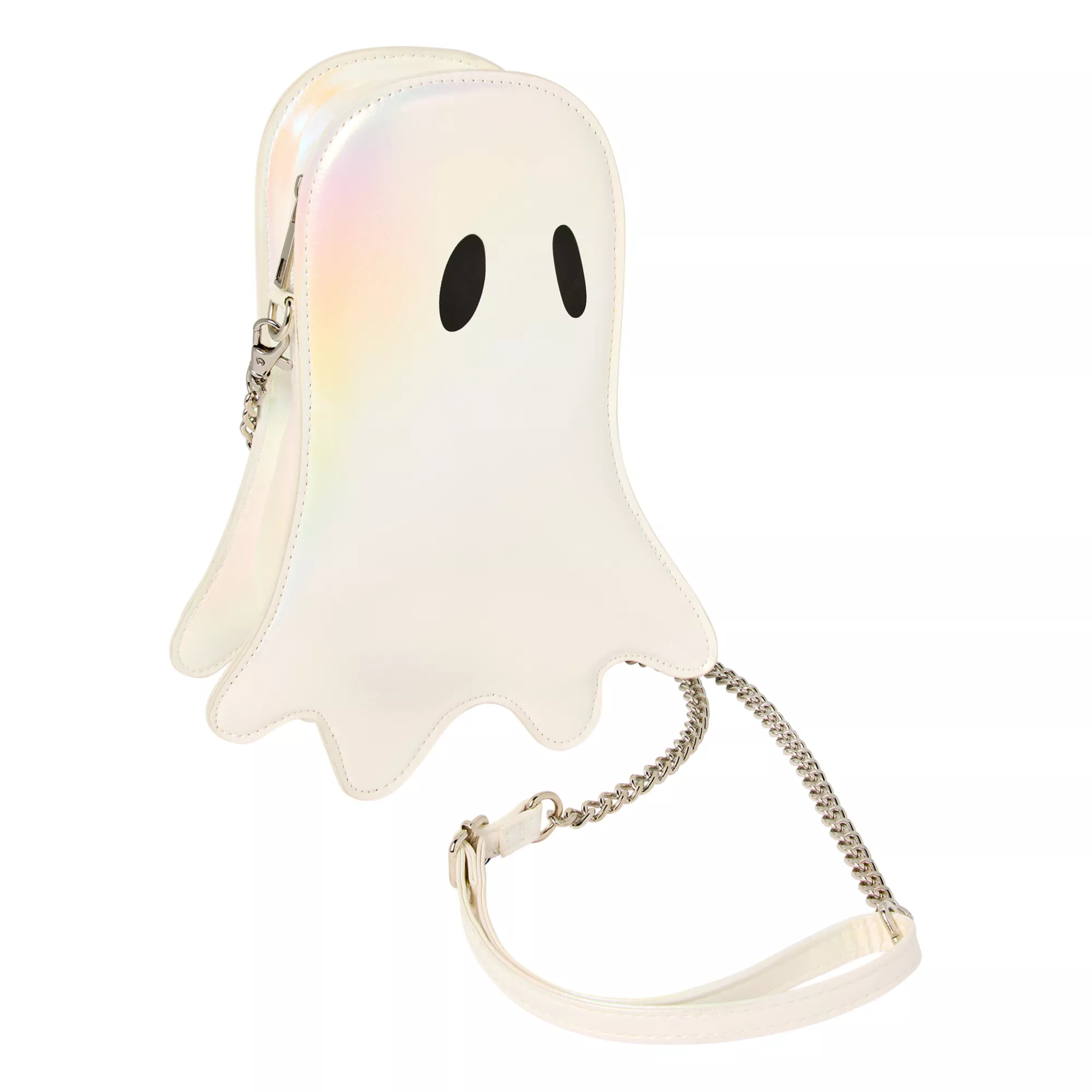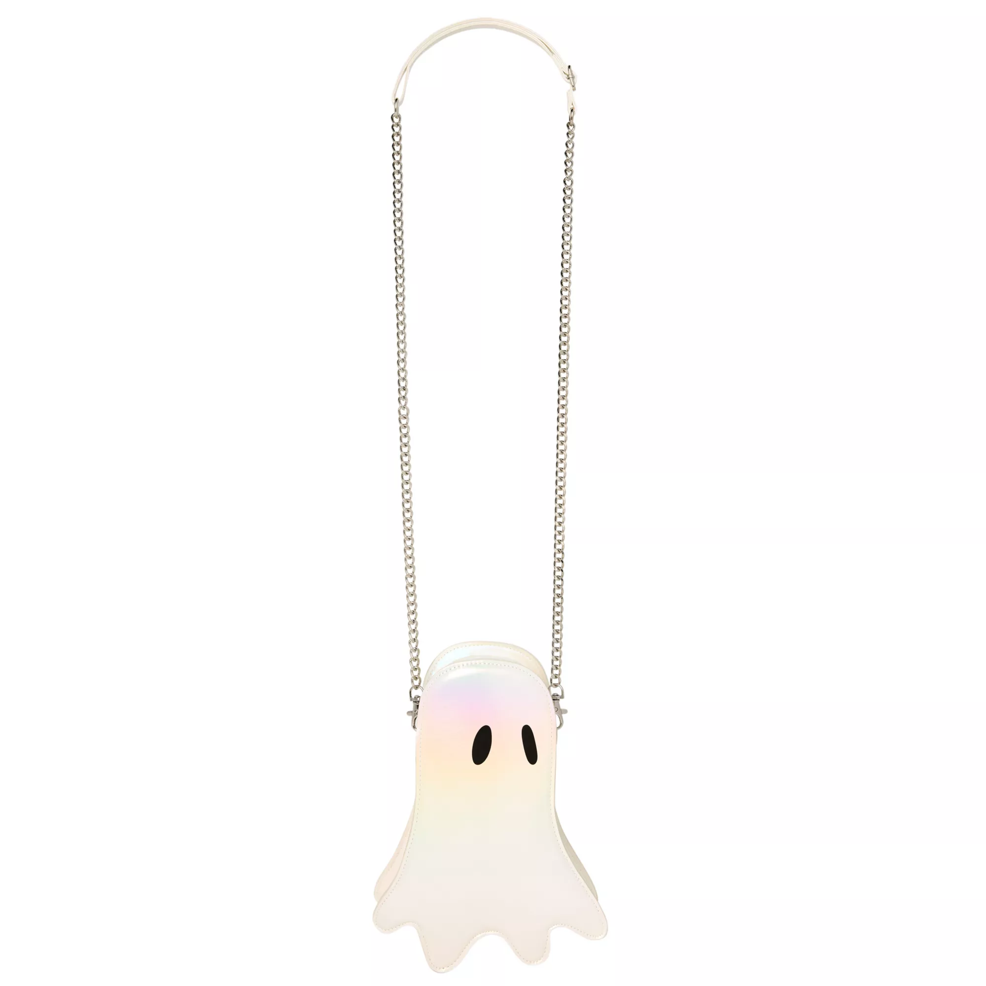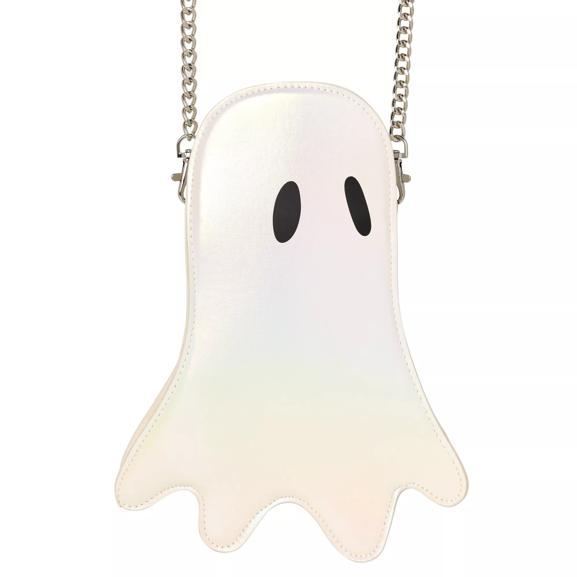 Carry your goodies in style with this Iridescent Ghost Crossbody Bag! This specter's iridescent sheen and simply sweet design make it a must-have for your Halloween wardrobe.