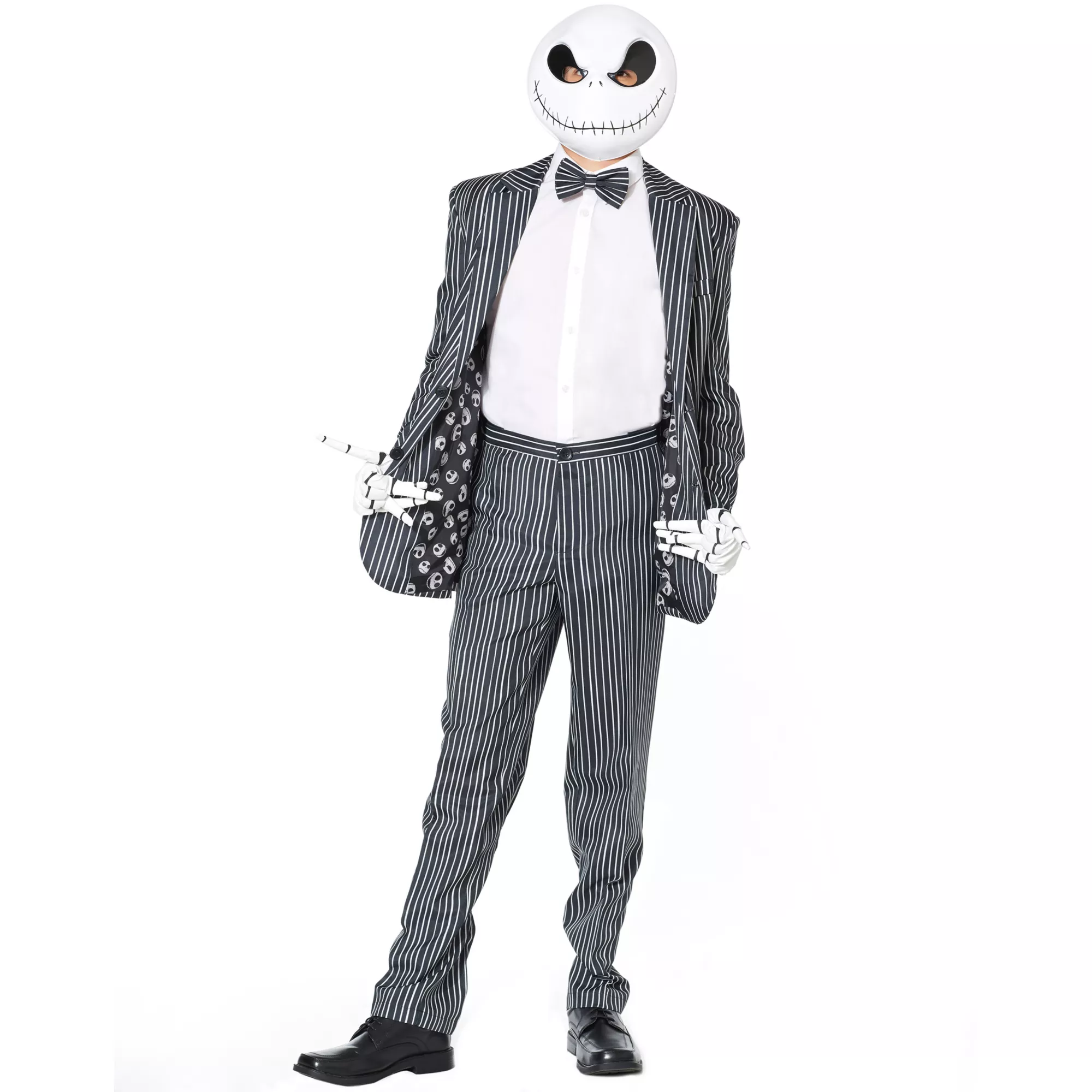 Suiting up in skeletal style is simple with this striped Jack Skellington suit! Whether your dressing in your Halloween best or trying to bring a little creepy into Christmas, this spooky suit will have you just as dapper as Jack. You'll be the Pumpkin King for sure with this officially licensed look!